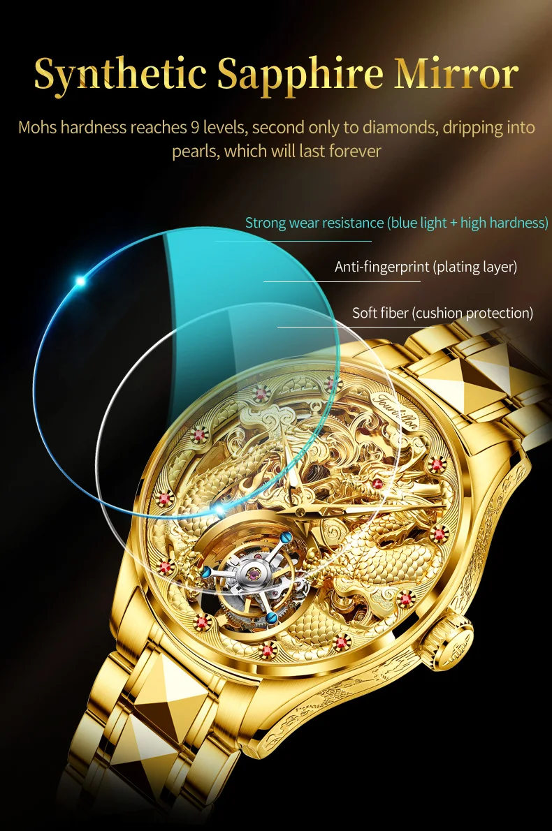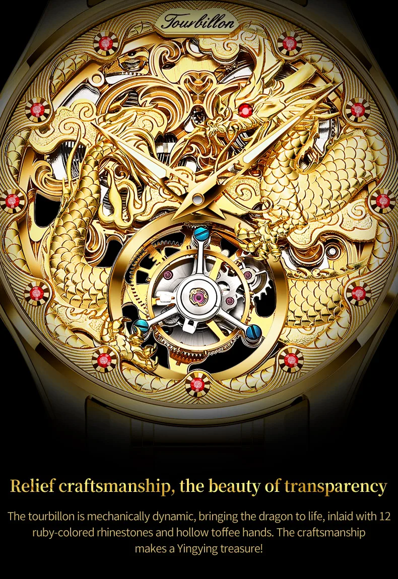 100% Golden Dragon OUPINKE 3176 True Tourbillon Watch Brand Luxury Tungsten Steel Men Automatic Mechanical Watch Reloj Hombre