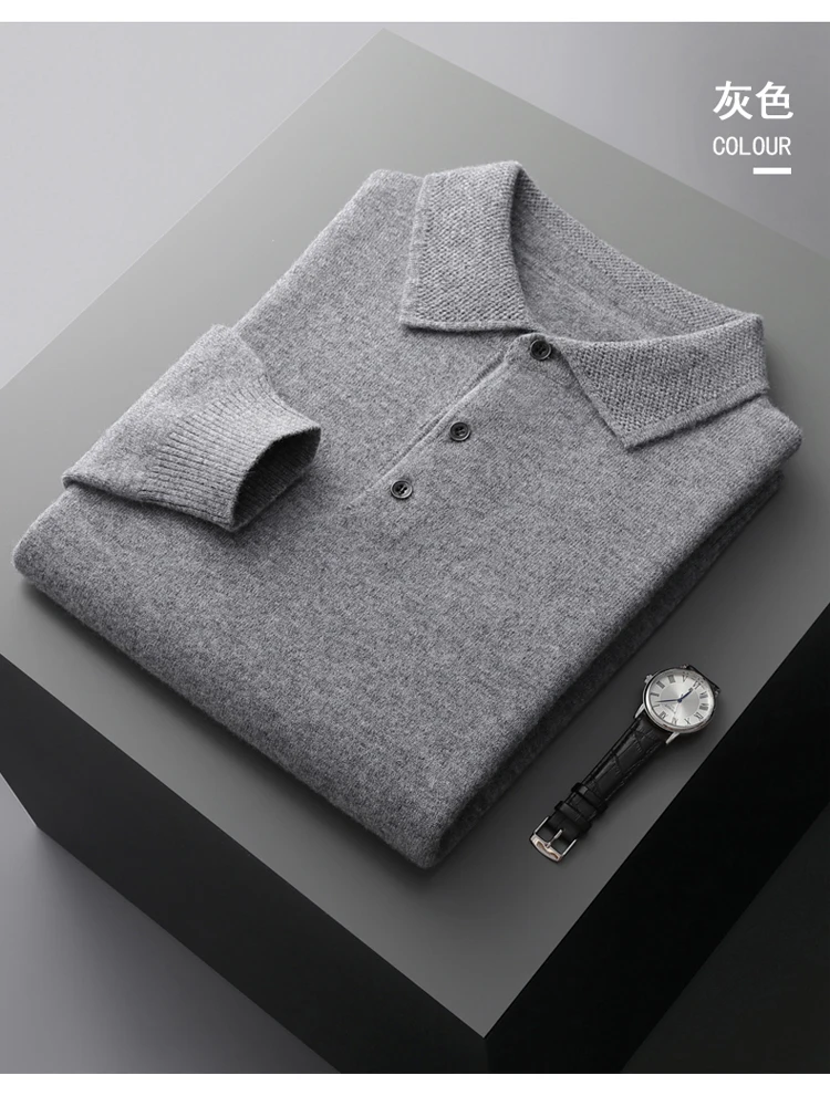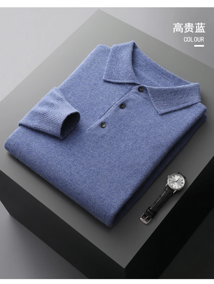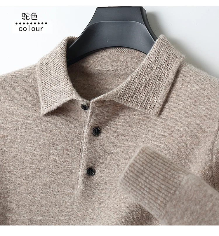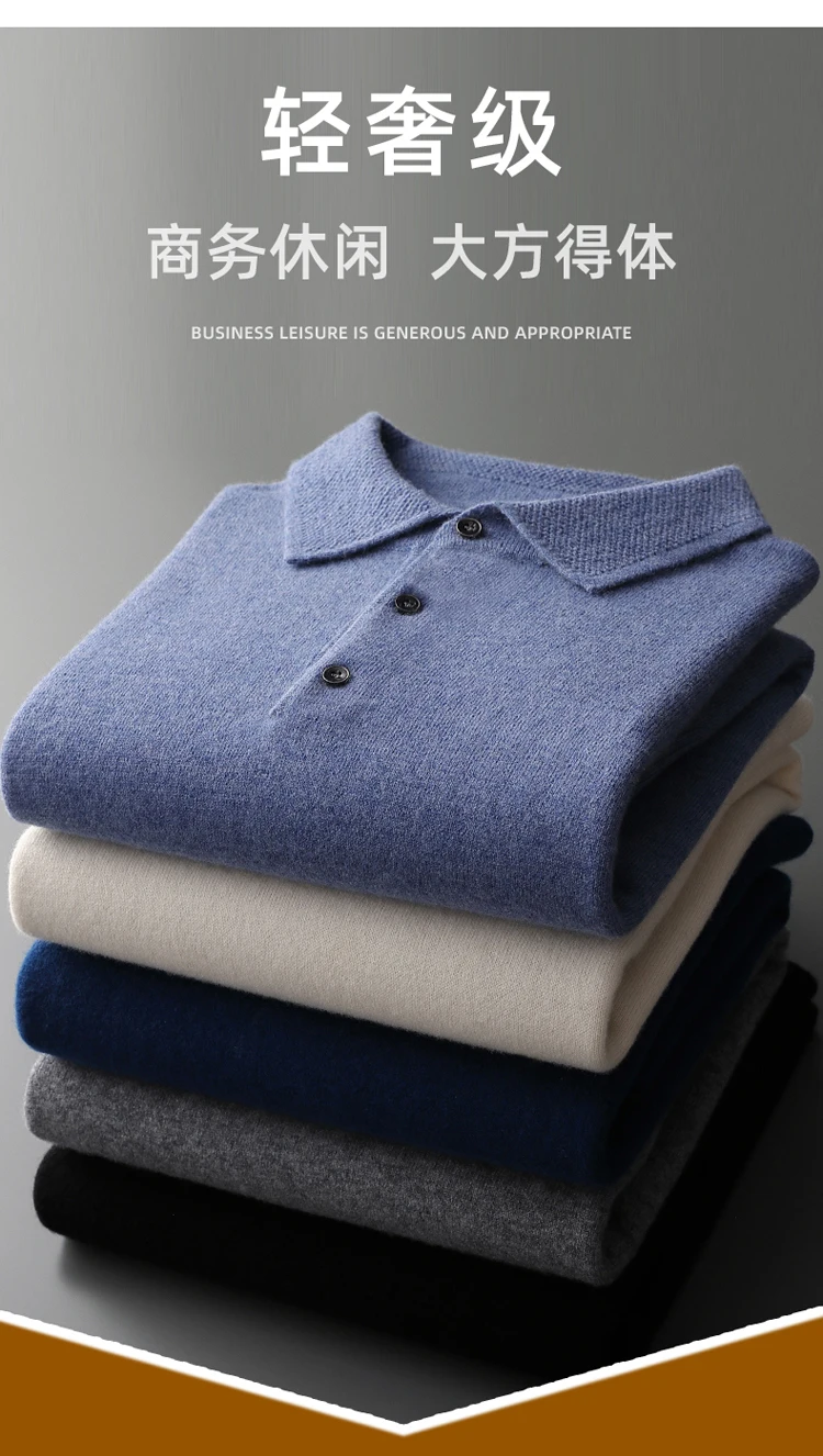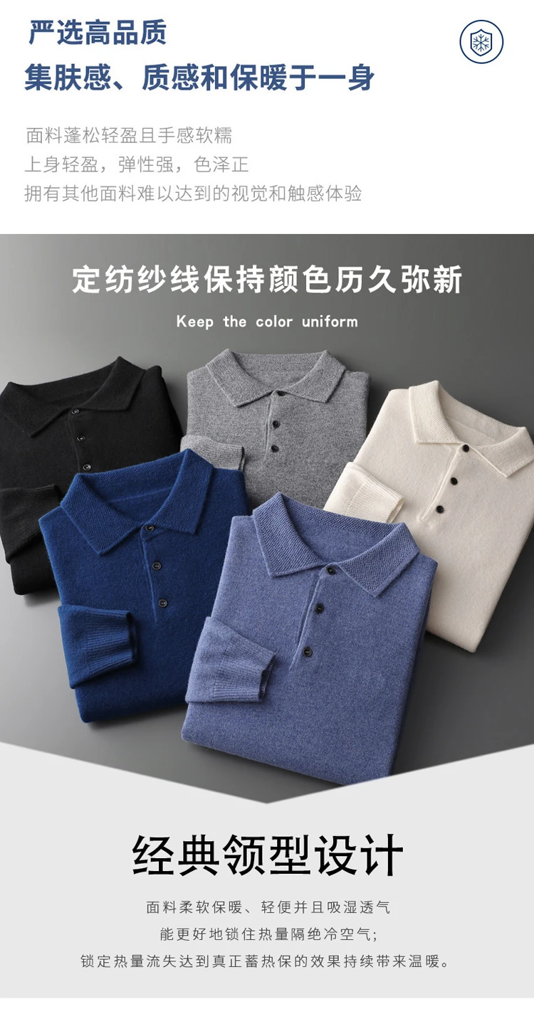 100% merino wool men’s lapel pullover long sleeve POLO neck sweater loose top business casual knit bottoming shirt