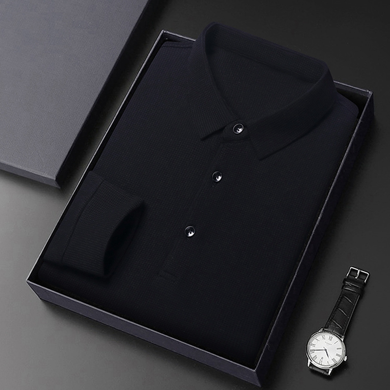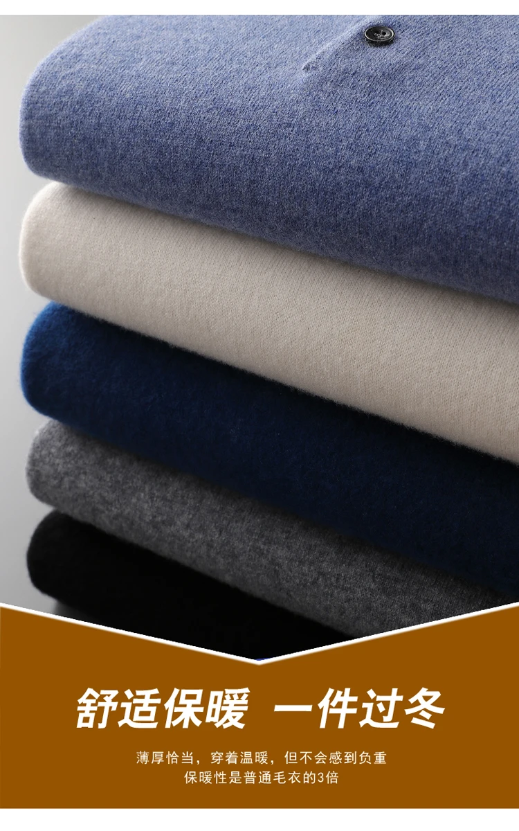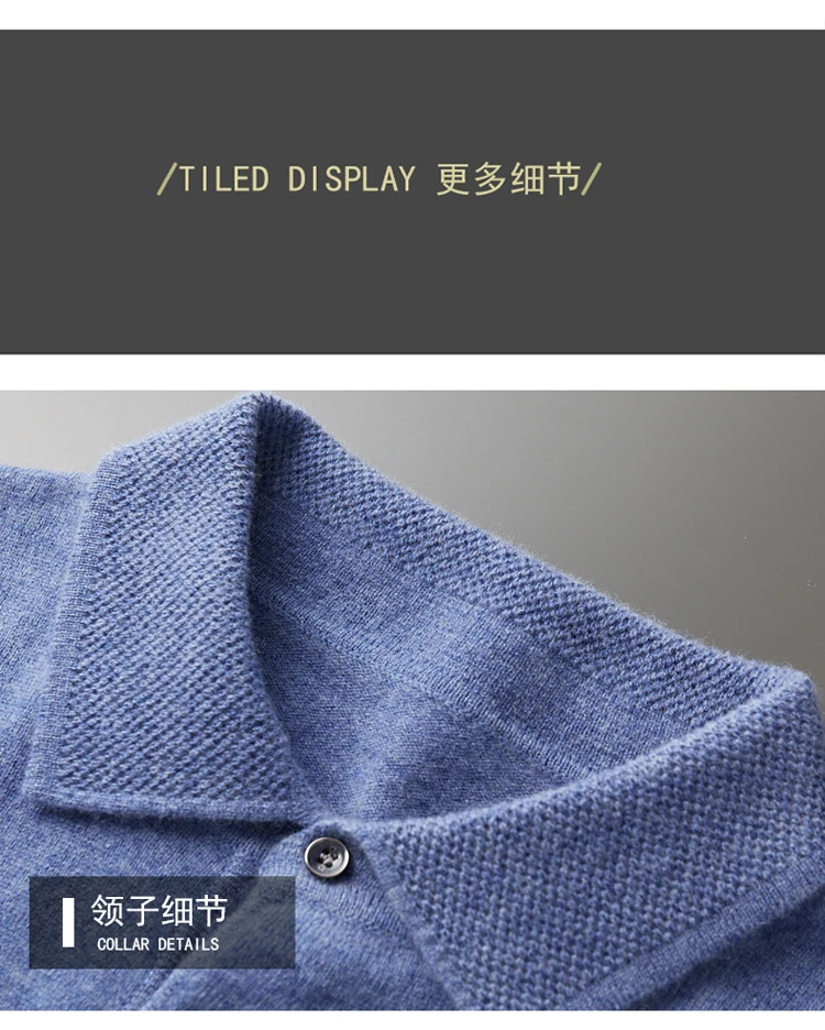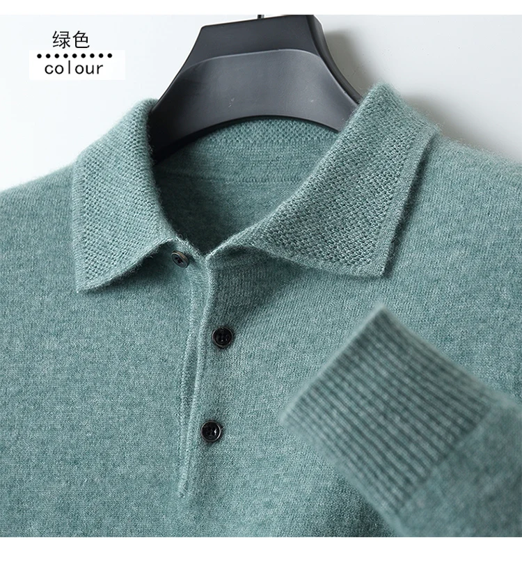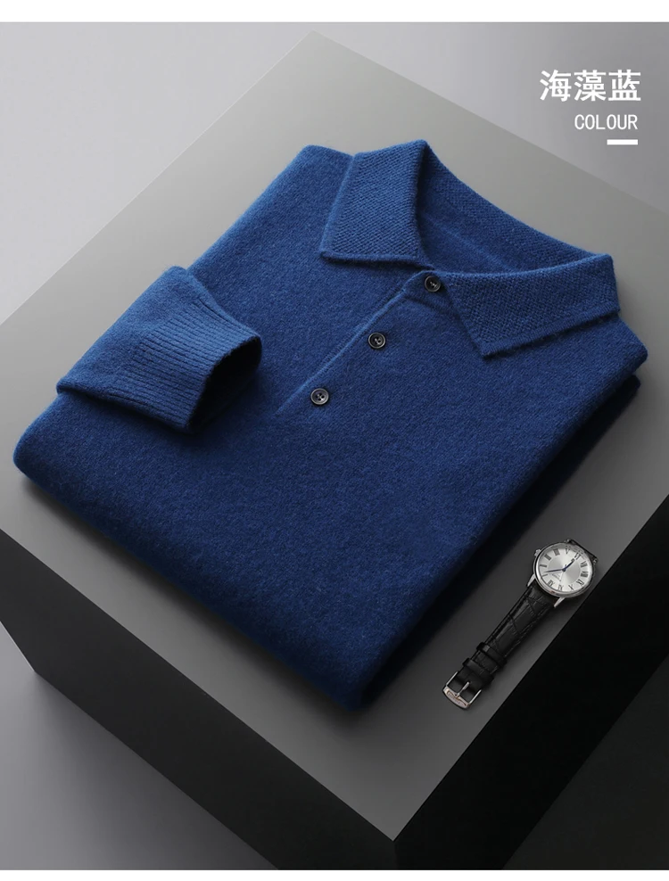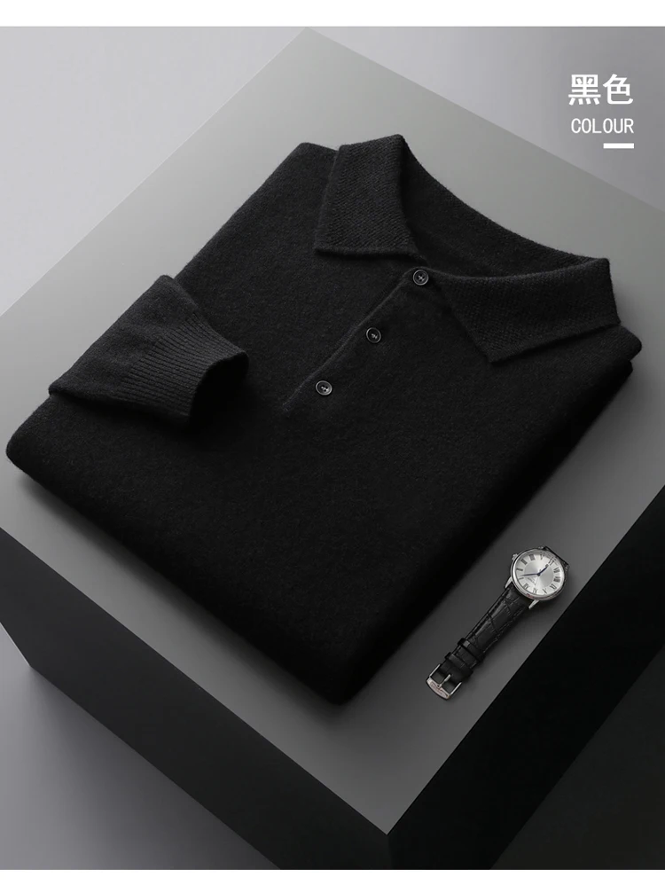 100% merino wool men’s lapel pullover long sleeve POLO neck sweater loose top business casual knit bottoming shirt