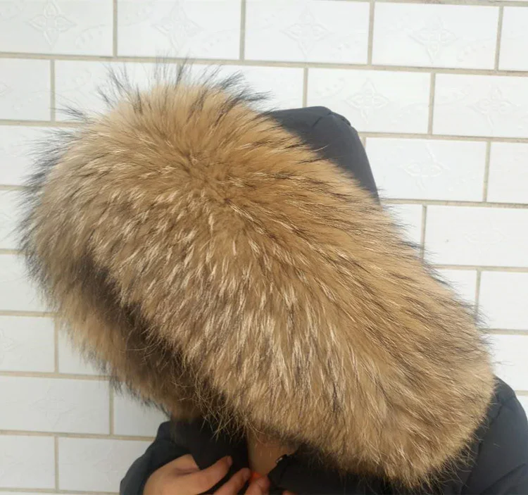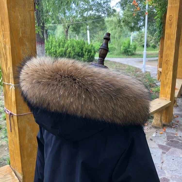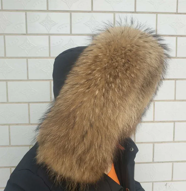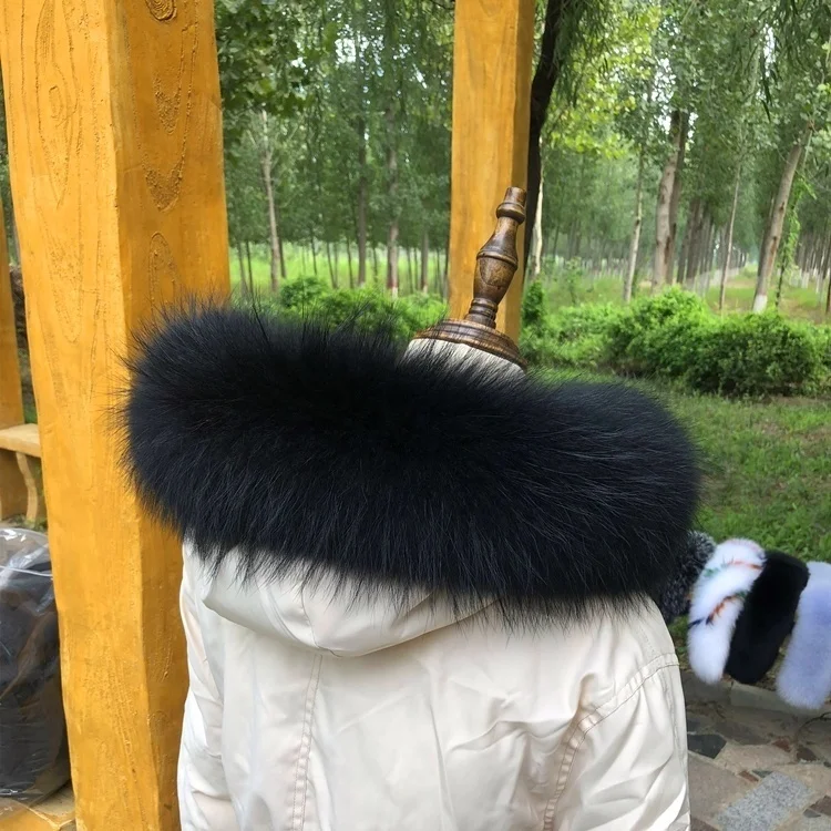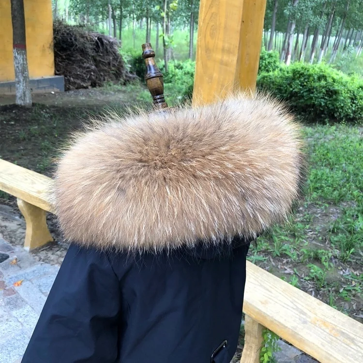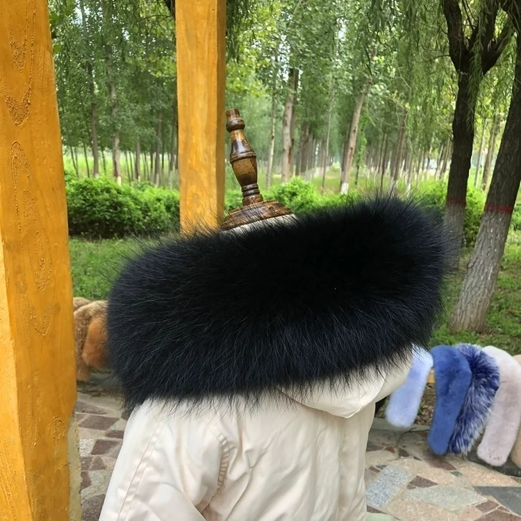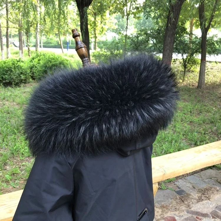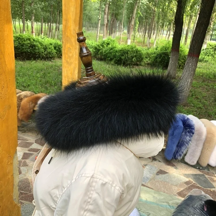 100%Real Raccoon Fur Scarf Natural Fur Black Collar Luxury Warm Large Size Fur Scarf Raccoon Collar Fur Scraves Detachable