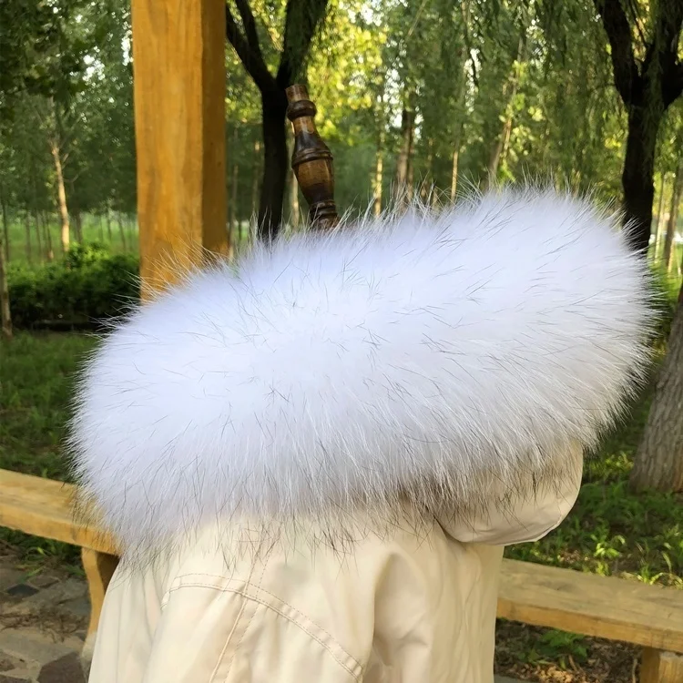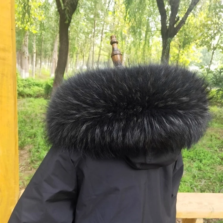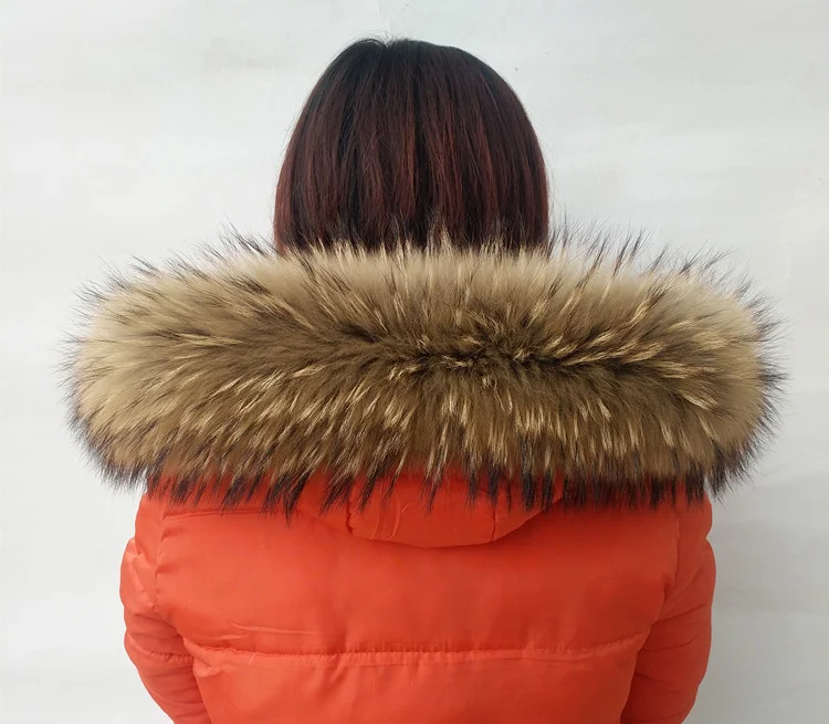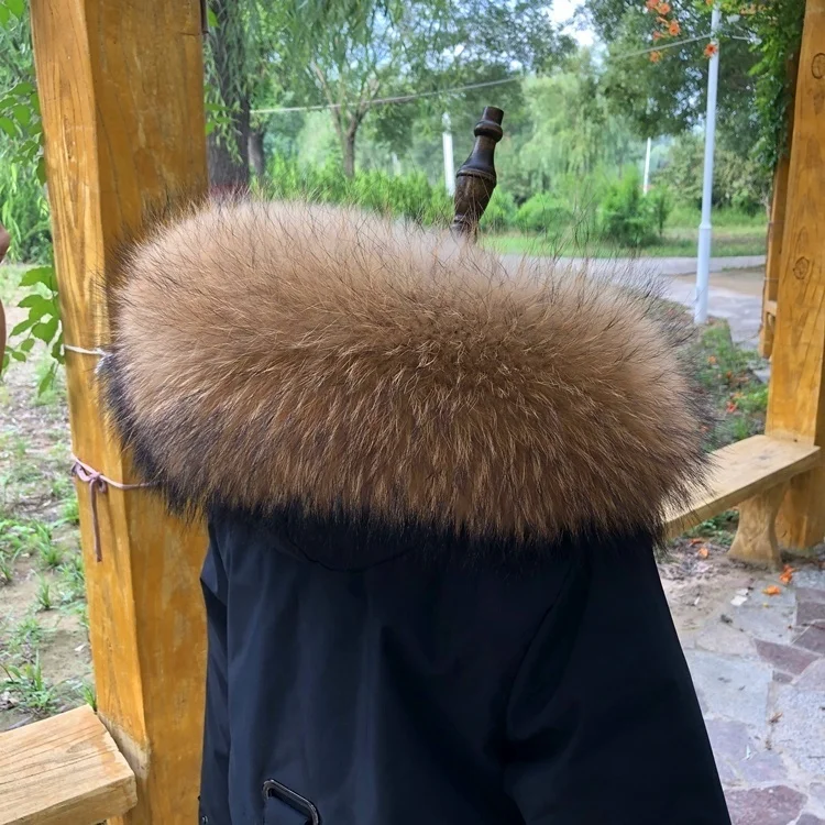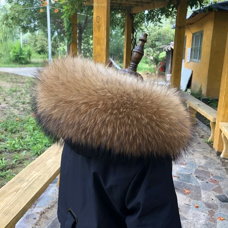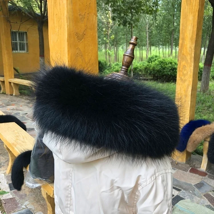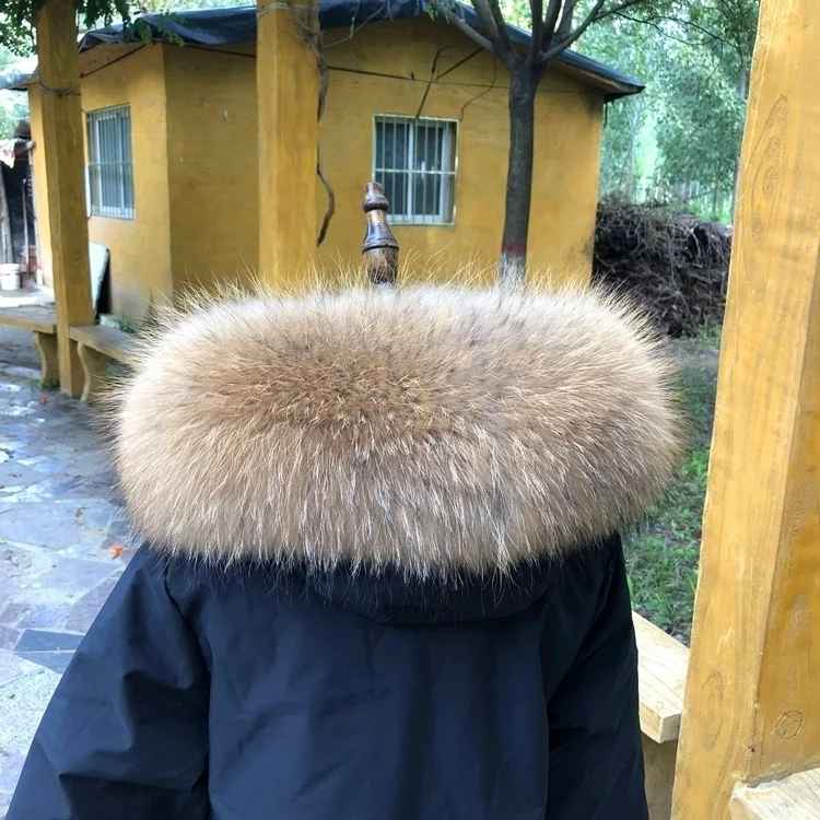 100%Real Raccoon Fur Scarf Natural Fur Black Collar Luxury Warm Large Size Fur Scarf Raccoon Collar Fur Scraves Detachable