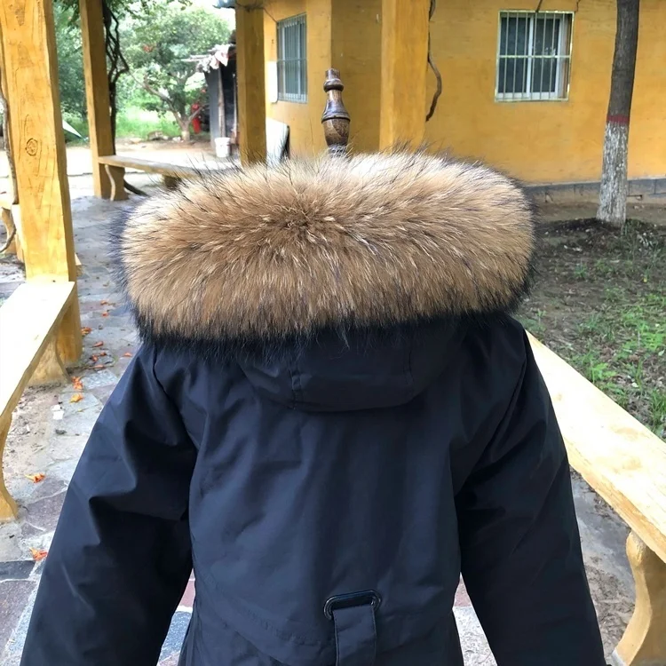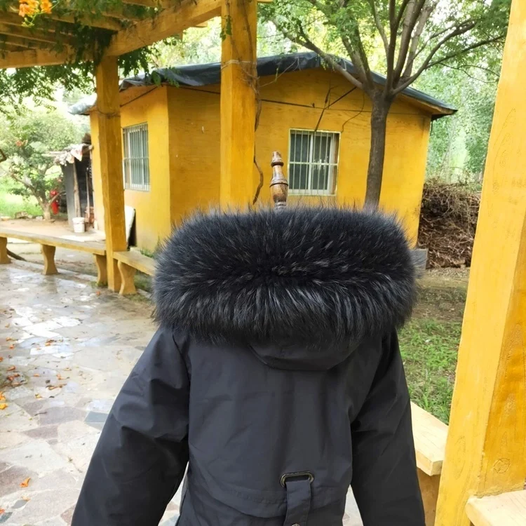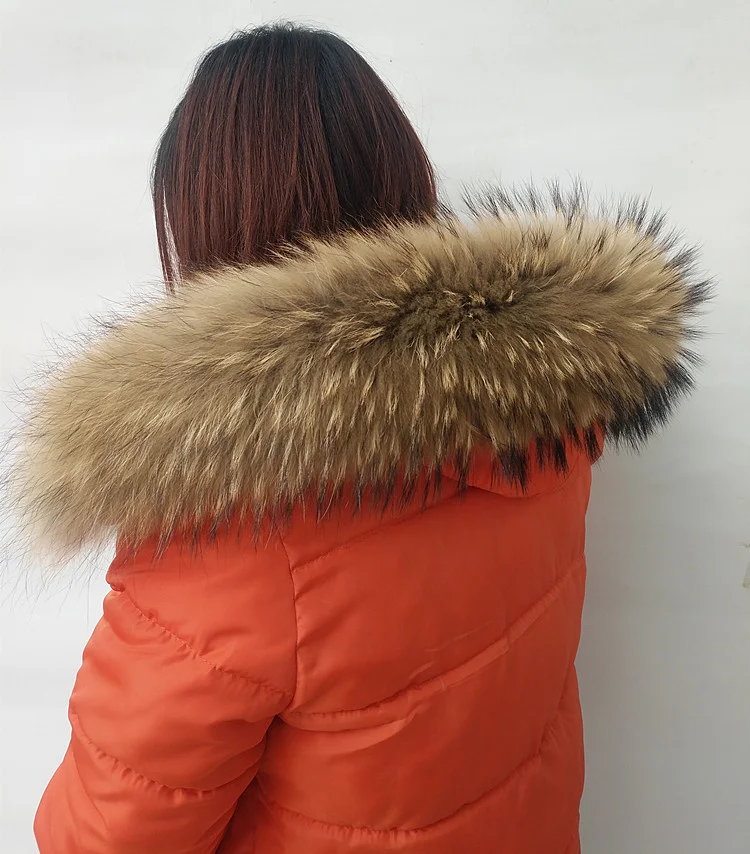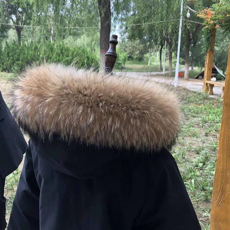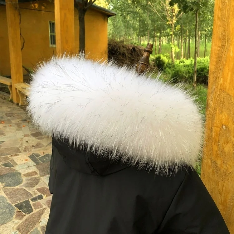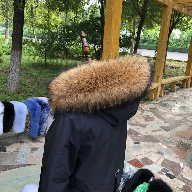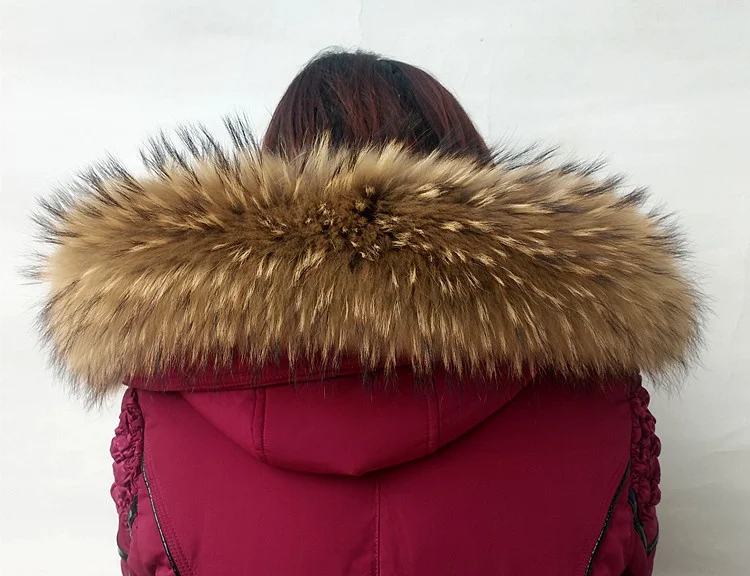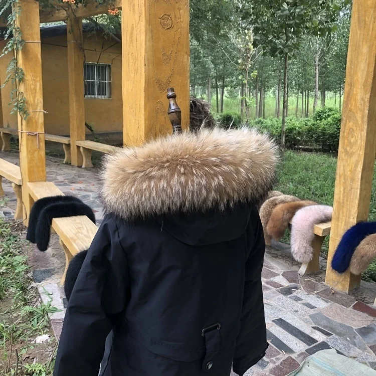 100%Real Raccoon Fur Scarf Natural Fur Black Collar Luxury Warm Large Size Fur Scarf Raccoon Collar Fur Scraves Detachable