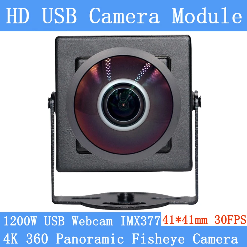 1300W 360° Panoramic Fisheye Webcam CCTV High Resolution 4K 3840×2880 IMX377 UVC Driver 30fps Mini USB Camera