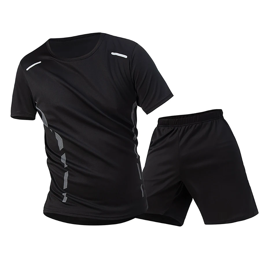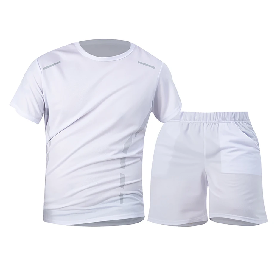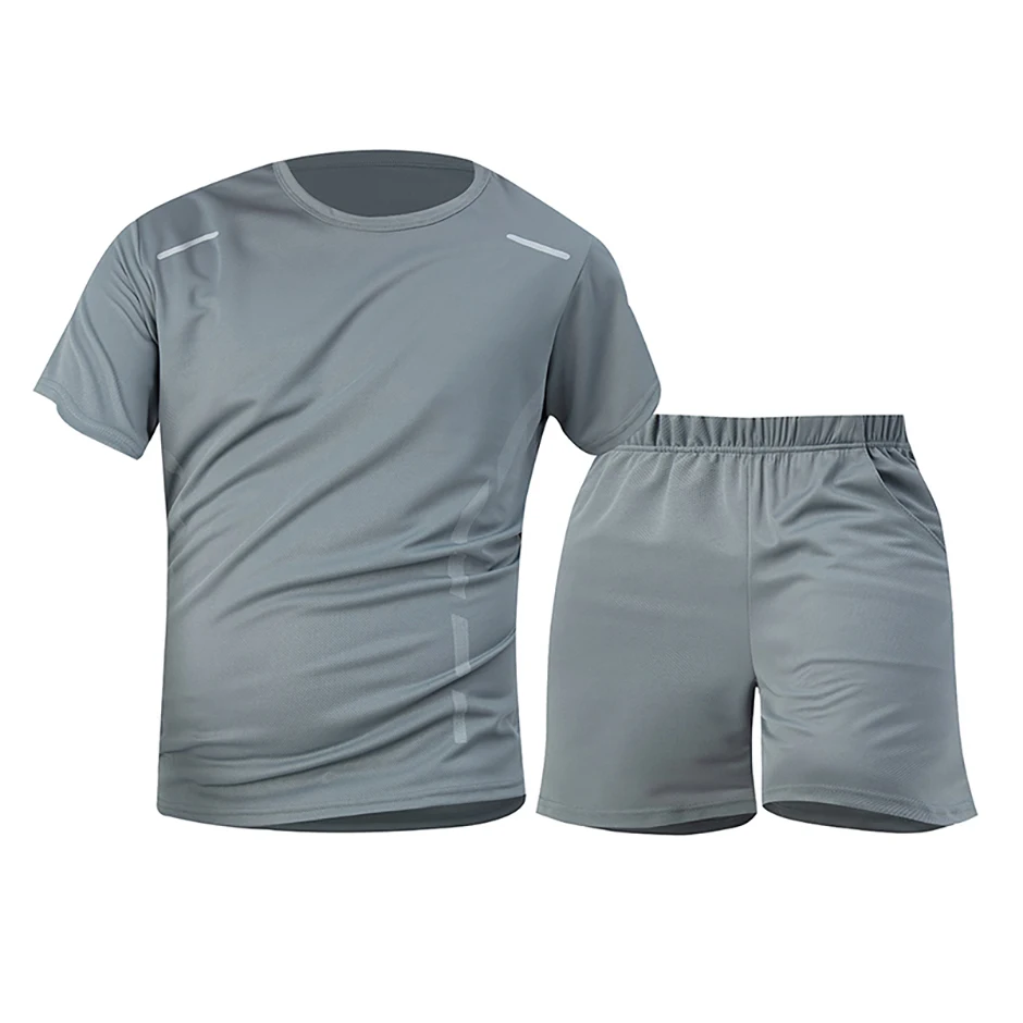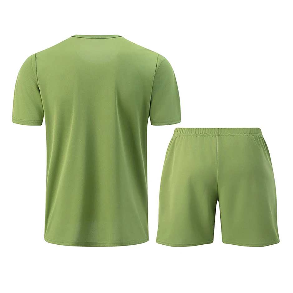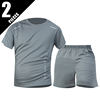2-piece Men’s Set Youth Four Season Printed Quick Drying Short Sleeved Sweatpants With Pockets Comfortable Plus Size Casual