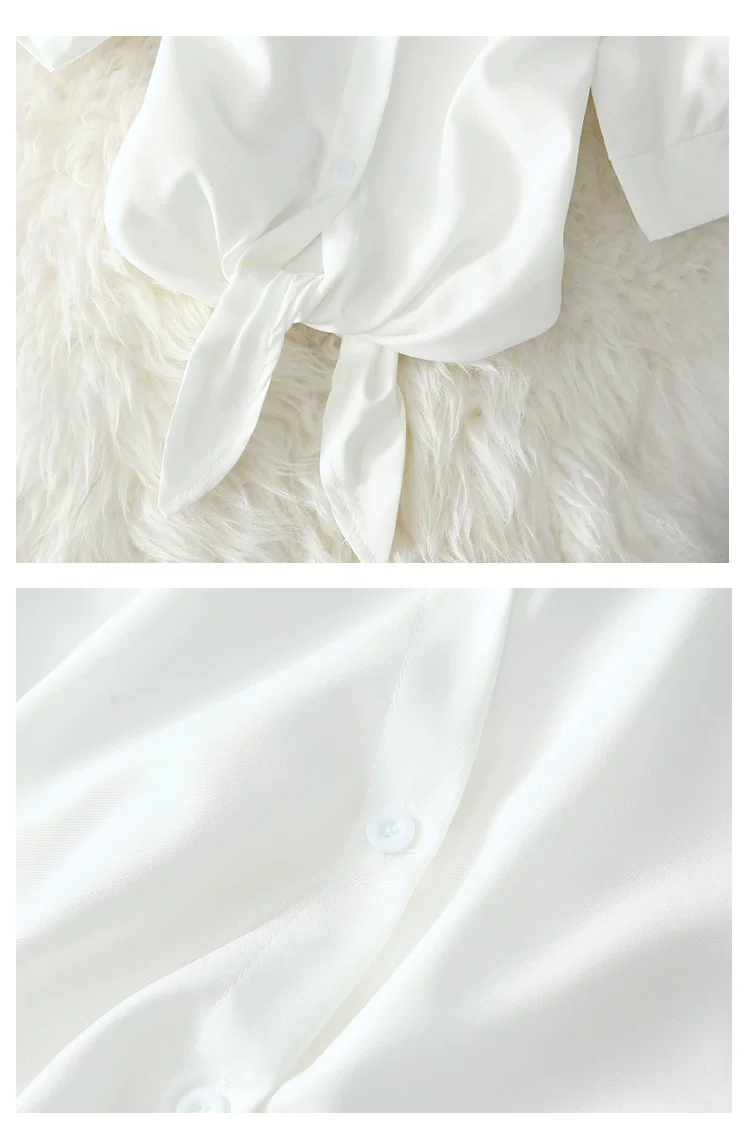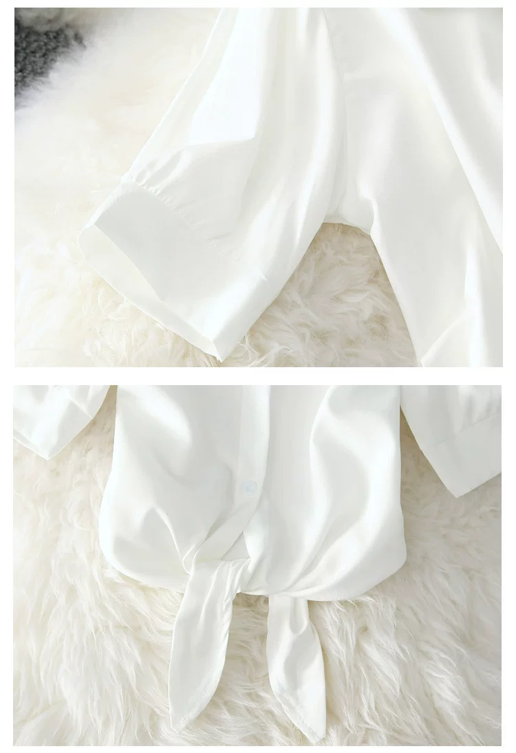 2023 Fashion Solid Color White Women Shirt Casual Blouses Autumn Half Sleeve Elegant Office Lady Tops 19870