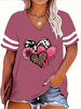 2024 Plus Size Spring/Summer New Love Print Casual Fashion Women’s V-Neck Short-Sleeved Loose T-Shirt 5XL 6XL