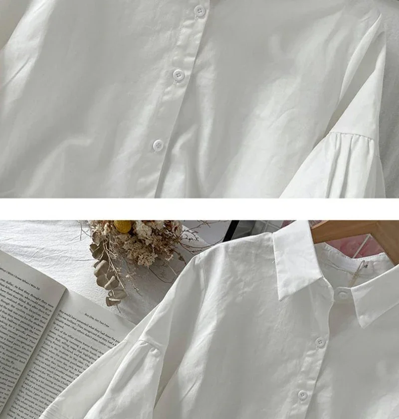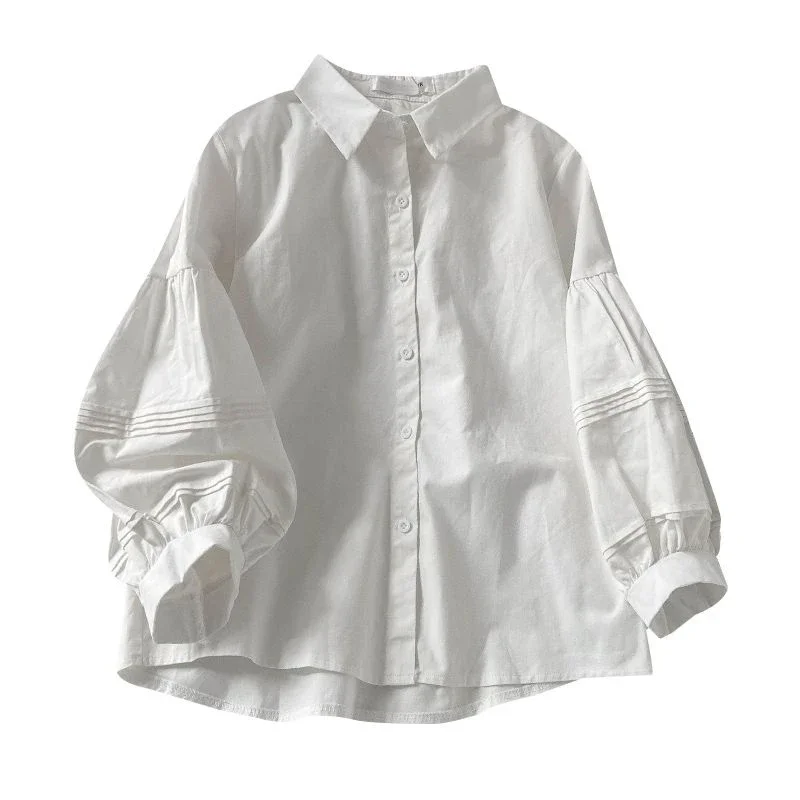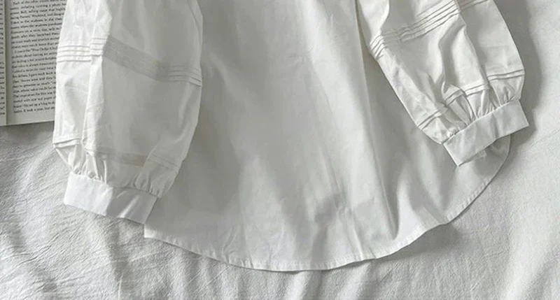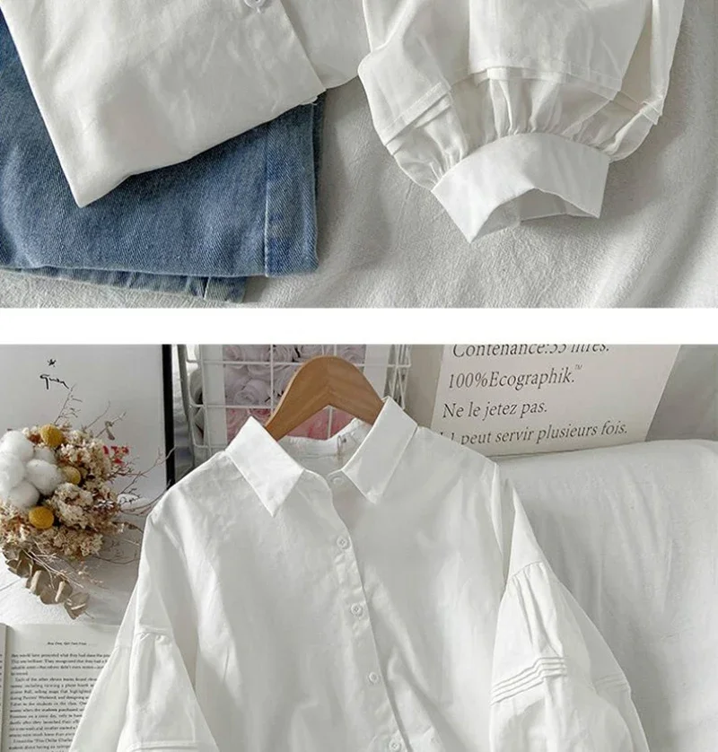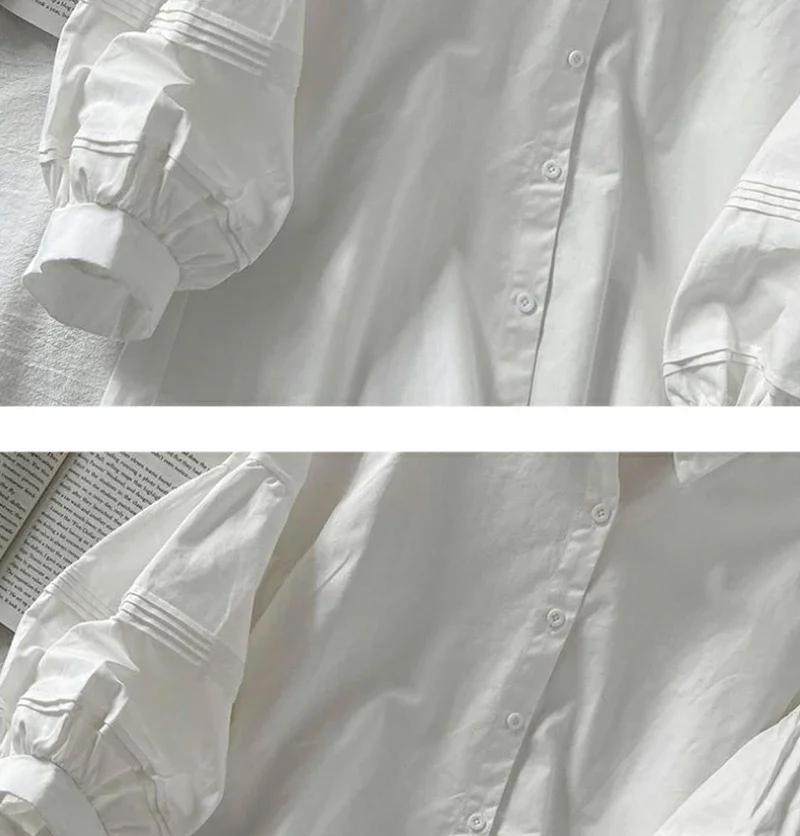 2024 Puff Sleeve Shirts Women White Turn Down Collar Preppy Sense of Design Chic Female Tops Korean Fashion Simple Summer Blouse