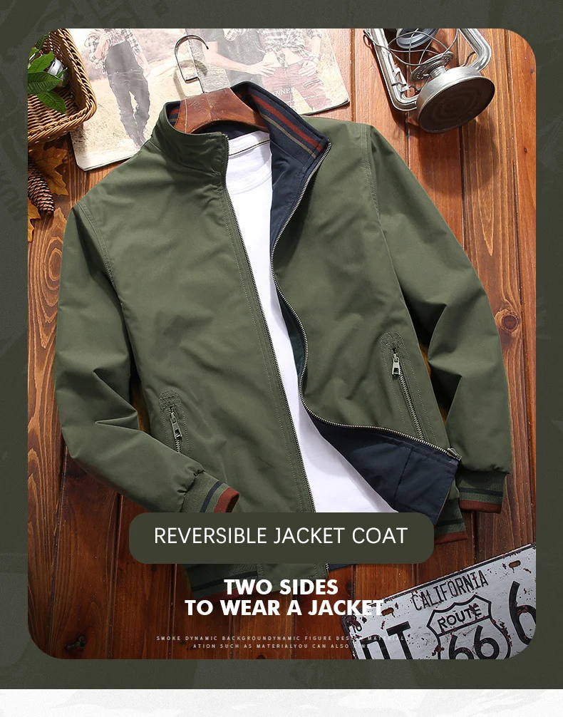 2024 Spring Autumn Men Jacket New Mens Double Sided Wear Stand Collar Casual Jacket Youth Trend Jacket for Men Clothing