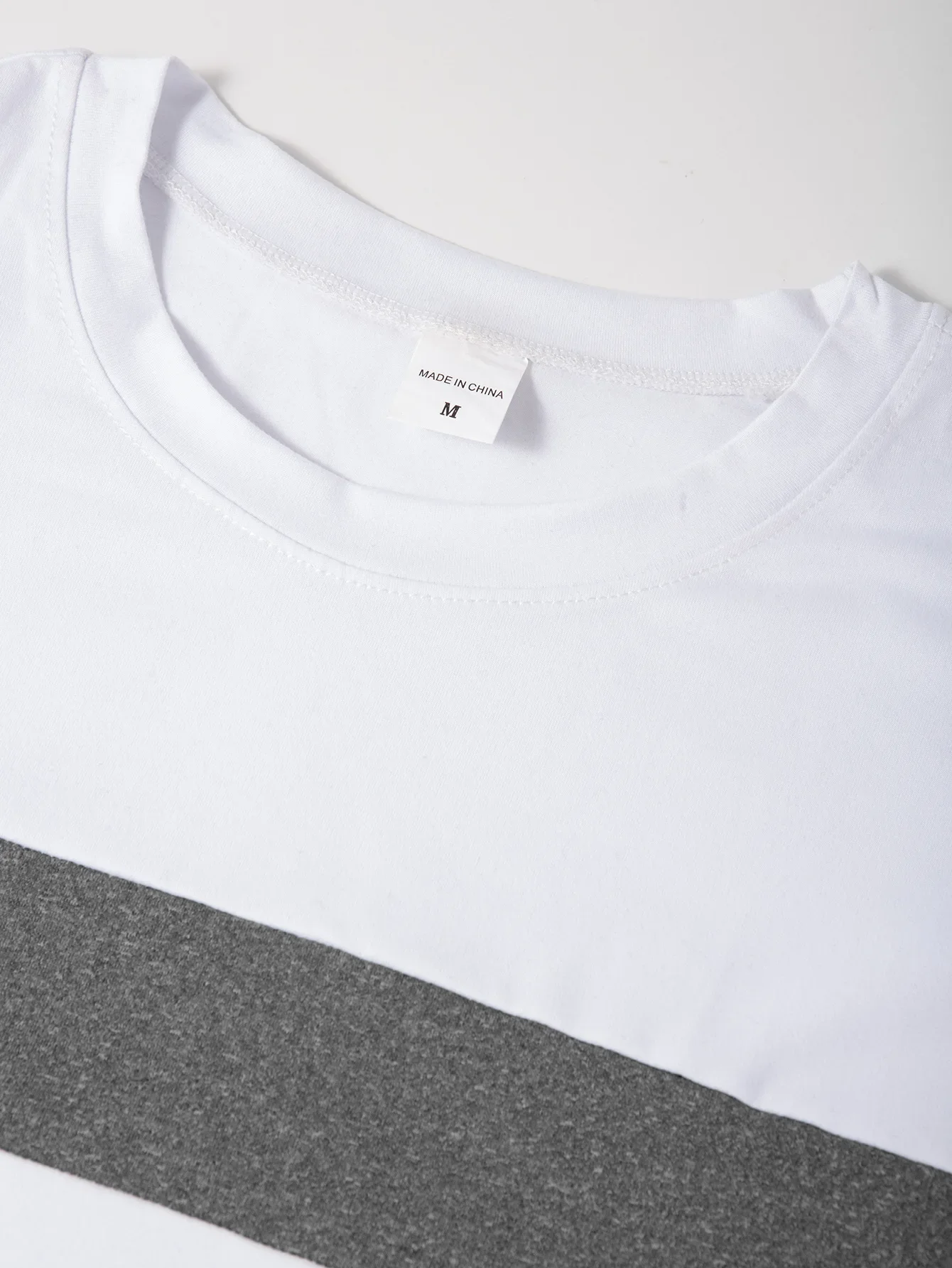 2025 Autumn/Winter Fashion Men’s Long Sleeve Round Neck Splicing T-shirt Business Anti Wrinkle Street Wear Casual Top