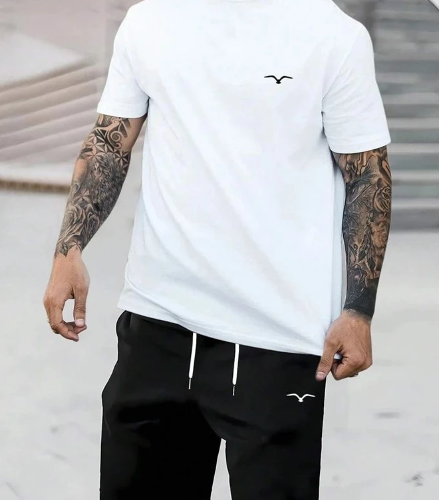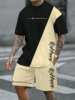 2025 hot selling spliced pattern men’s T-shirt round neck short sleeved drawstring shorts outdoor breathable quick drying short