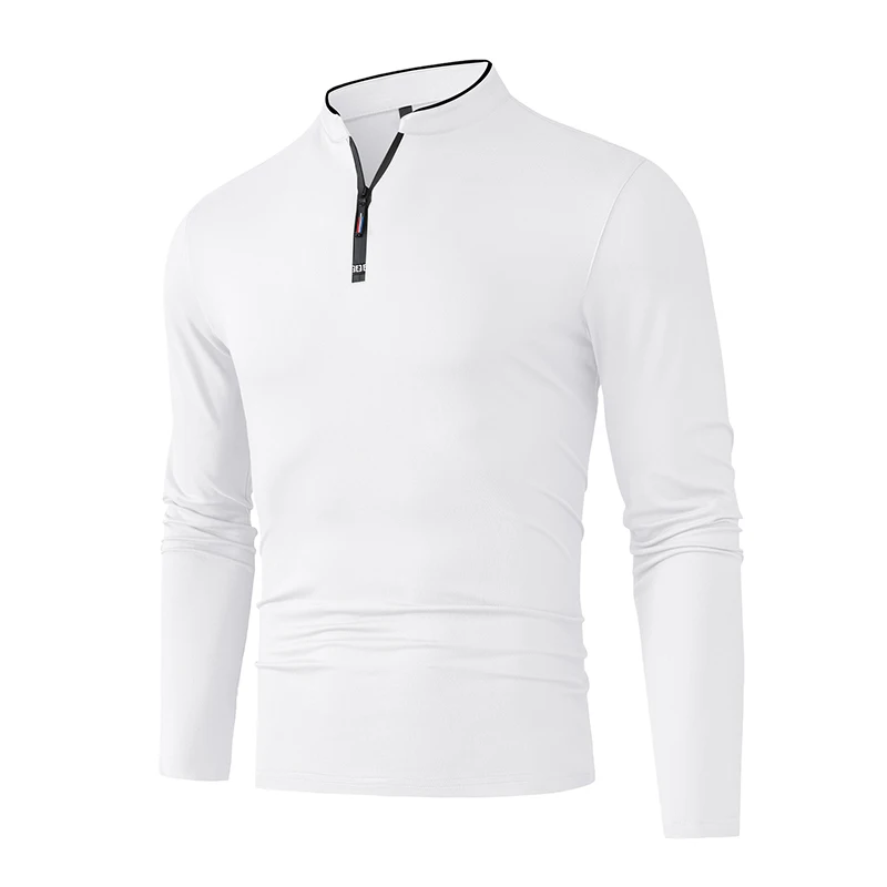 2025 New Men’s Casual Fashion Zipper Solid Color Long Sleeved Polo Shirt Stand Up Collar Versatile Comfortable Top