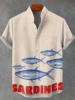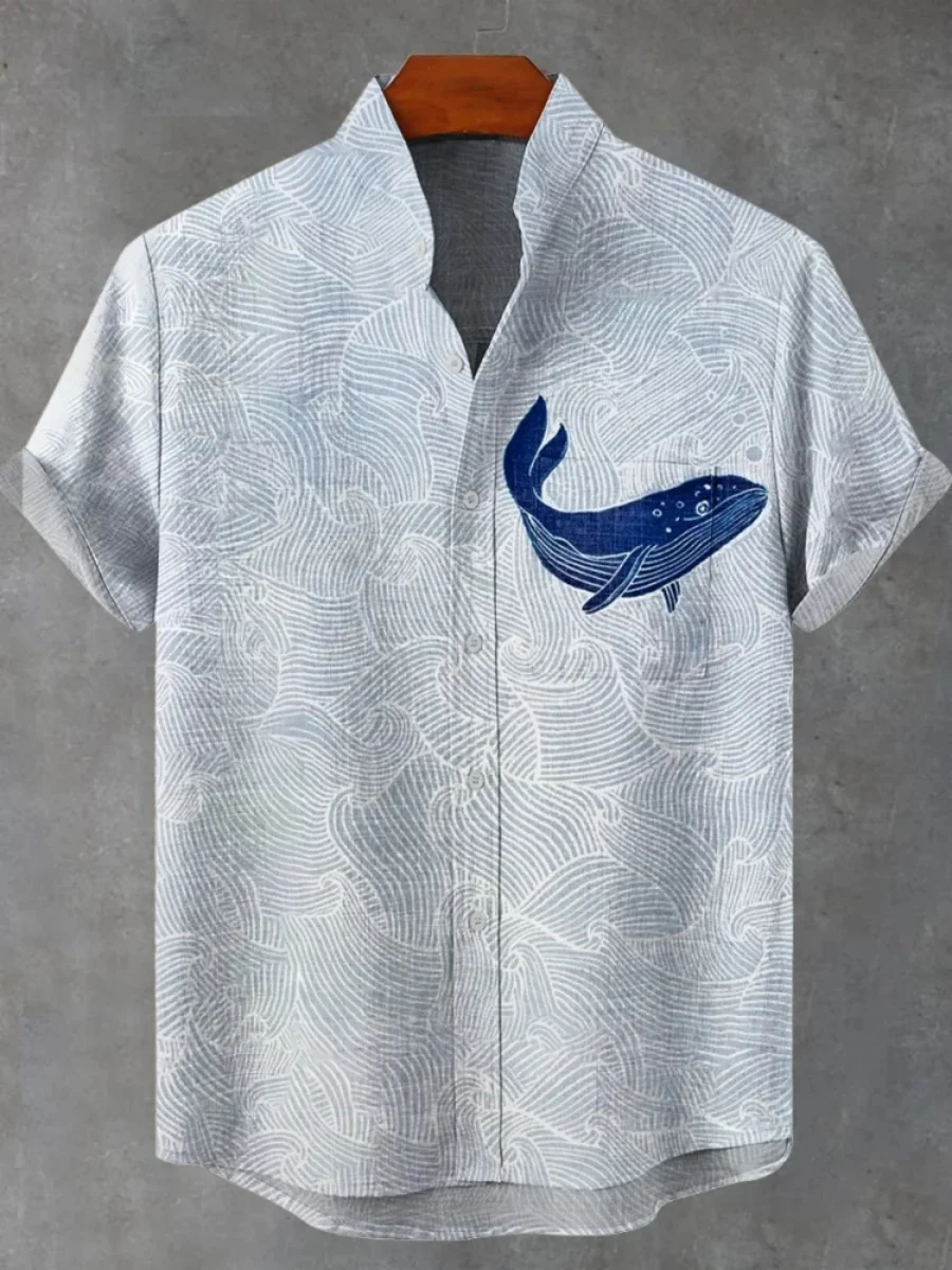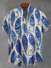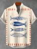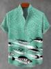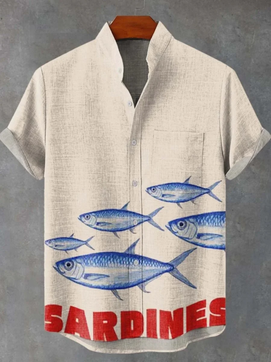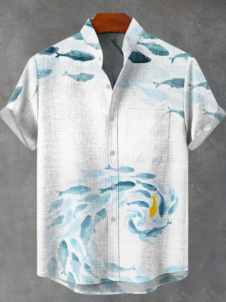 2025 New Printed Retro Style Men’s Fish Print Casual New Linen Comfort Fabric, Button-down Short-sleeved Shirt Printed T-shirt