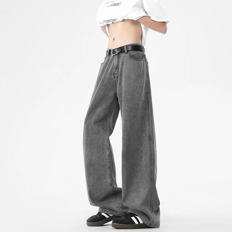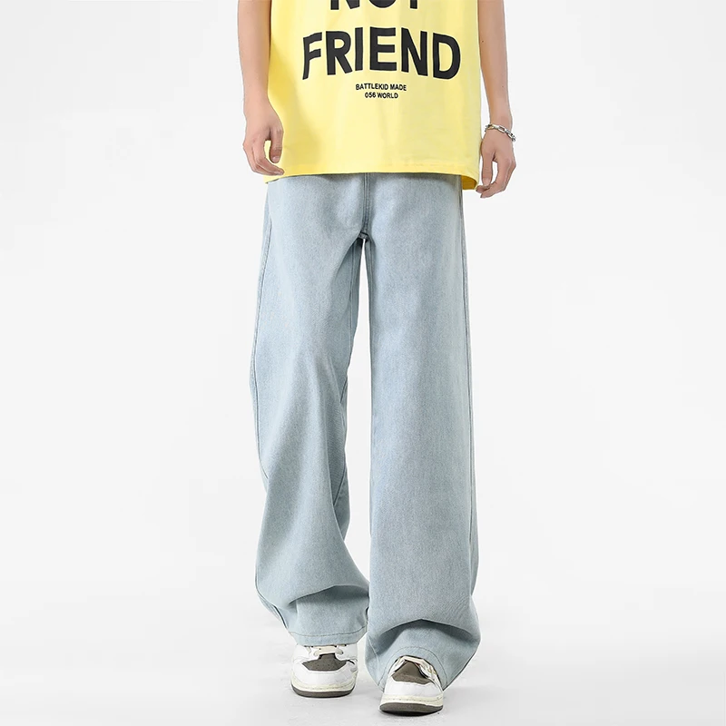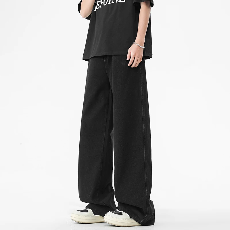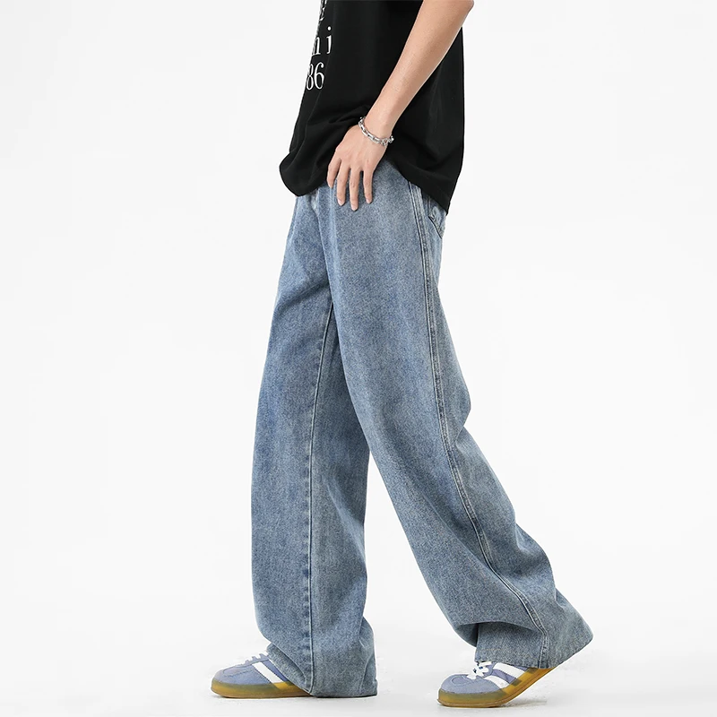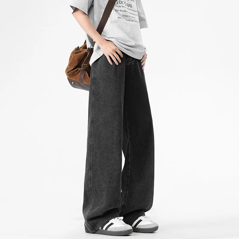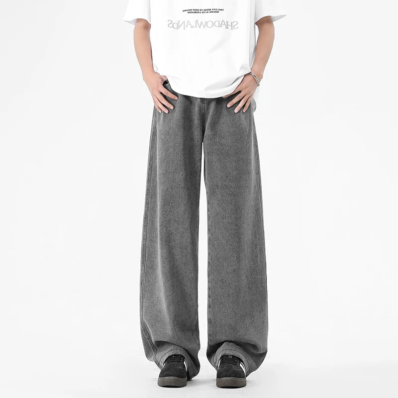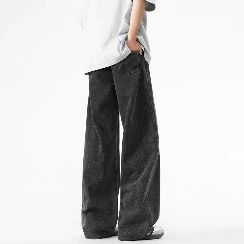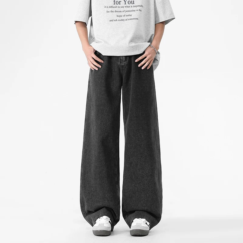 2025 new spring and autumn season new solid color casual jeans for men, versatile loose straight leg wide leg washed pants