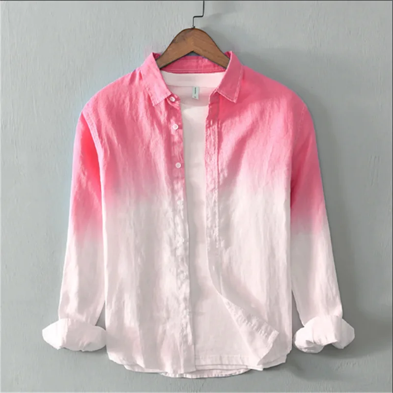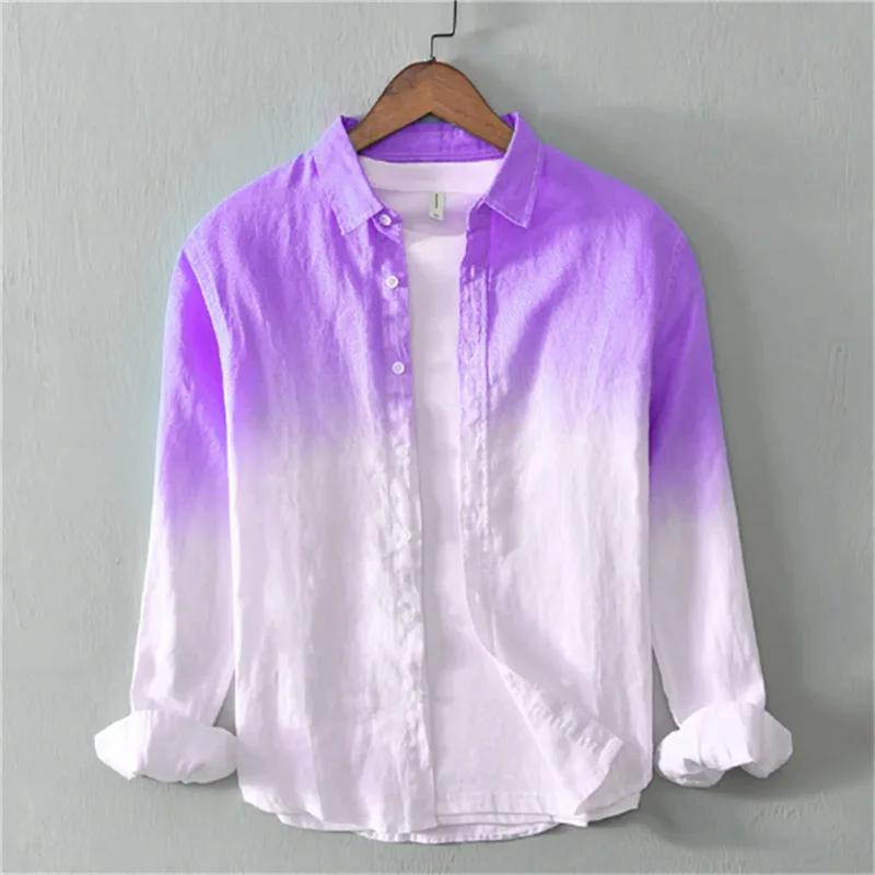 2025 New Summer Shirt Casual Long Sleeve Lapel Shirt 3D Printing Light Color Changing Men’s Linen Camisas Verano Hombre Shirt