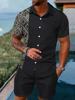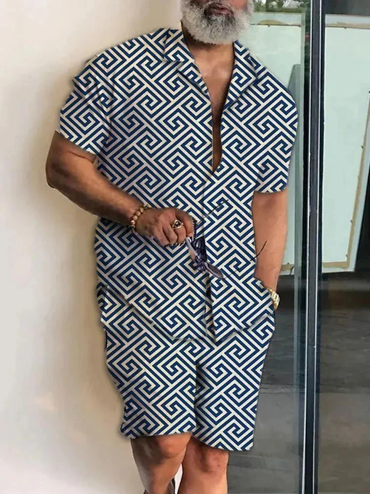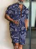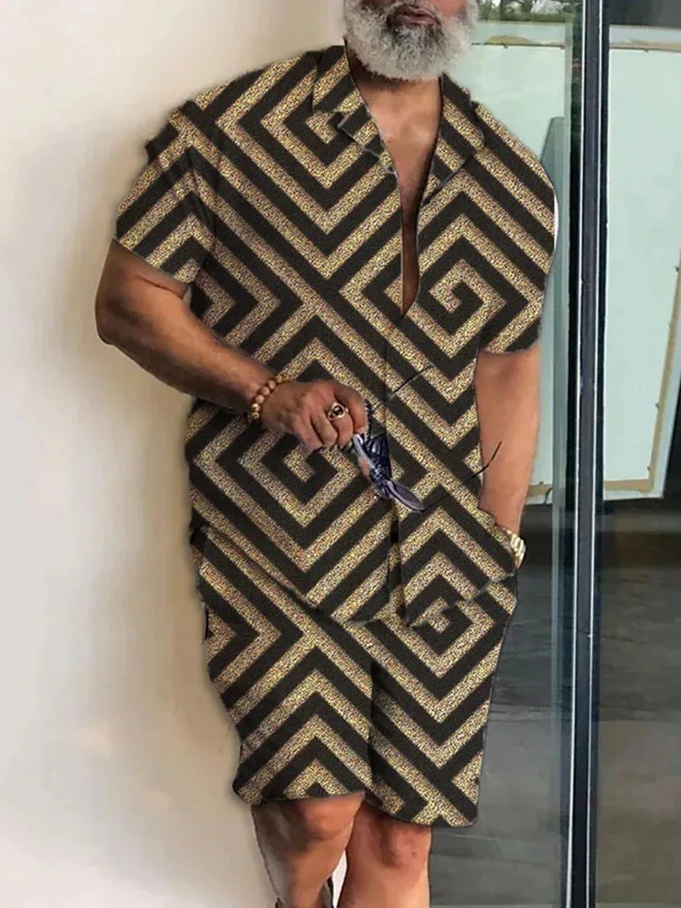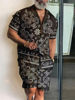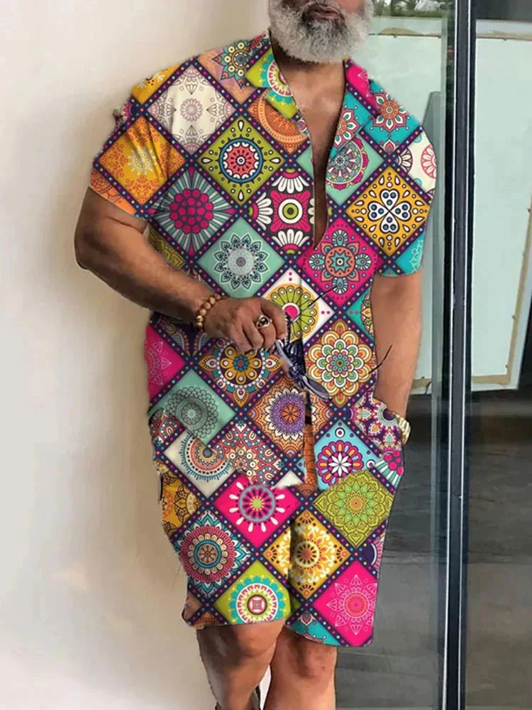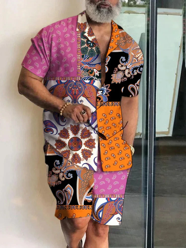 2025 Summer Baroque Luxury Men’s Shirt Set Men’s Hawaii Vacation Short Sleeve Shirts Suits Drawstring Shorts 2 Pcs Party Clothes