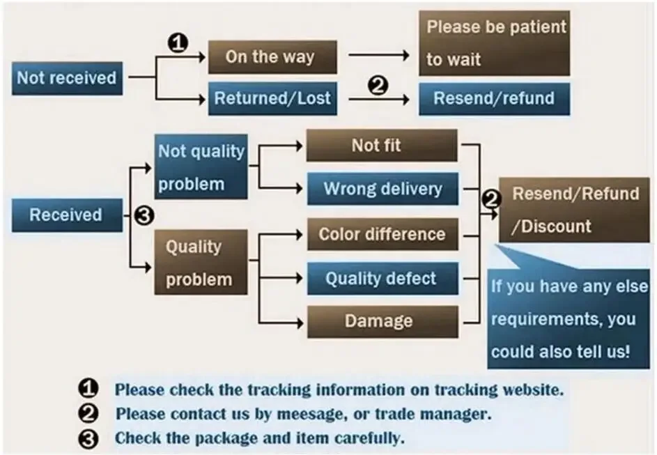 • If you did not receive the product within the guaranteed time( 45 days not including 2-5 day processing) you can request a refund or a reshipment.