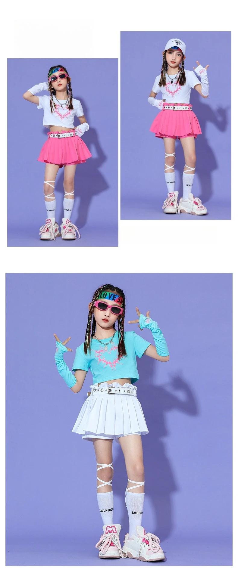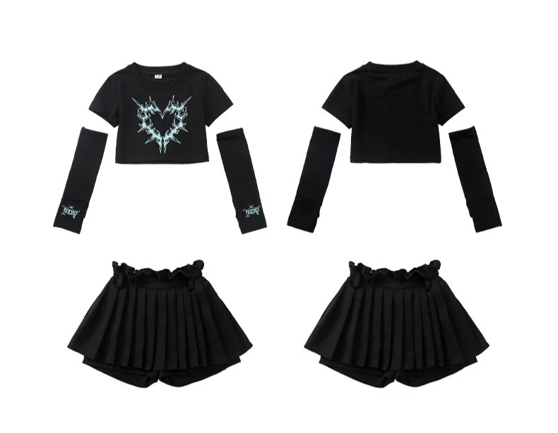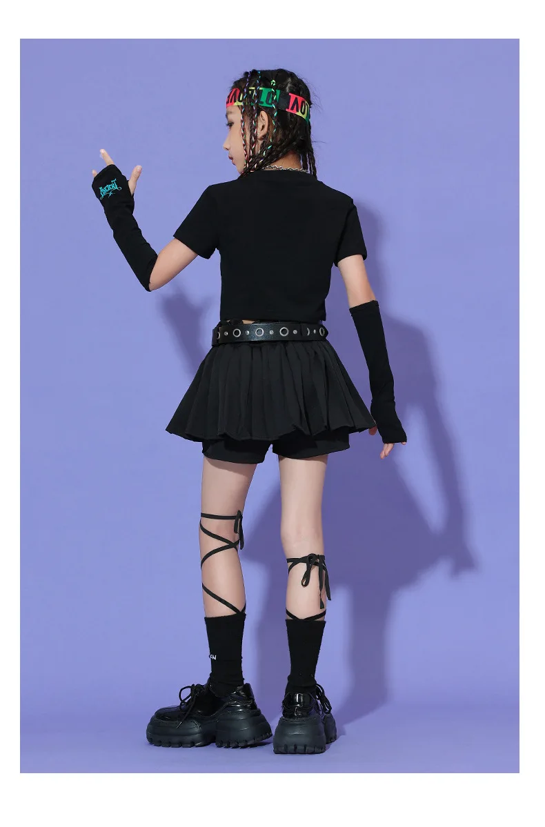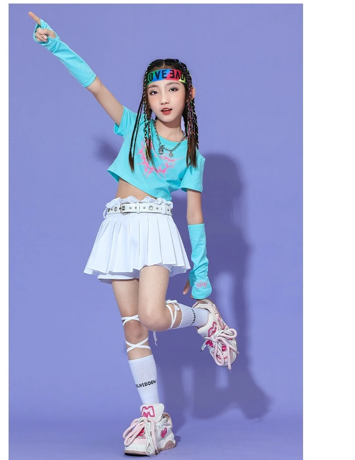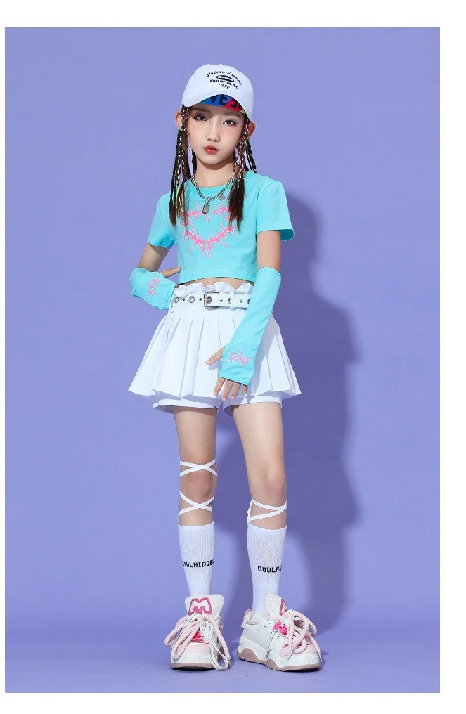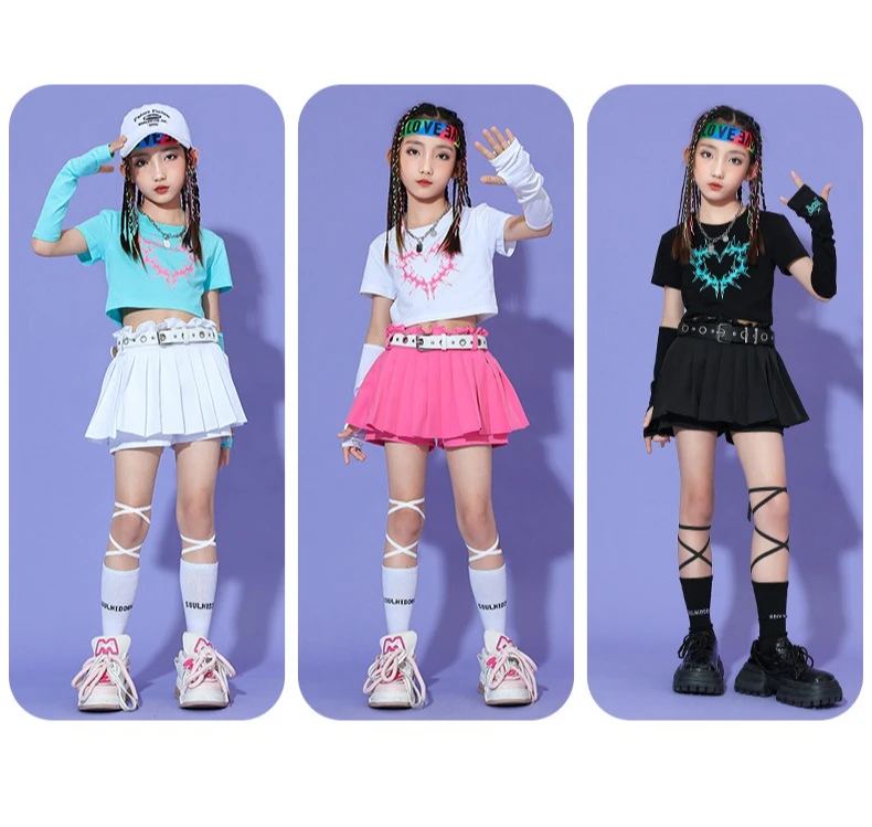 2025 Summer Fashionable Girl Jazz Dance Costume Soft T-shirt Dress Set Performance Costume Dance Costume Kids Kpop Outfit Rave