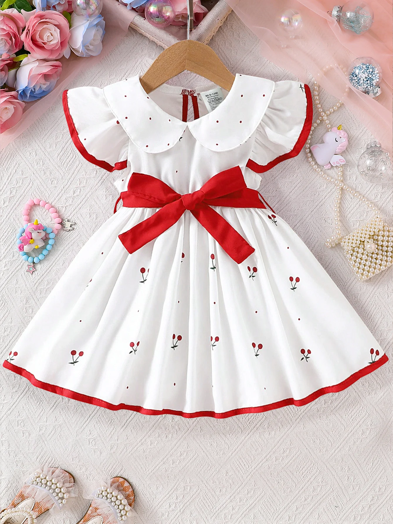2025 Summer New Girls Infant Floral Print Dress Breathable Baby Princess Dress 0-3 Years Cool Short Sleeve Outfit