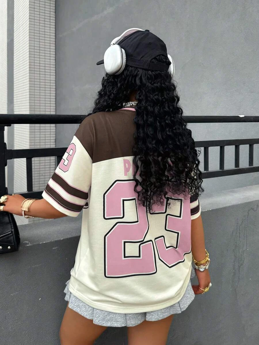 2025 Women Summer New Los Angeles No.23 Fashion V-Neck Tee Comfortable And Versatile Top Y2K Street Retro Hip Hop Sports Jersey