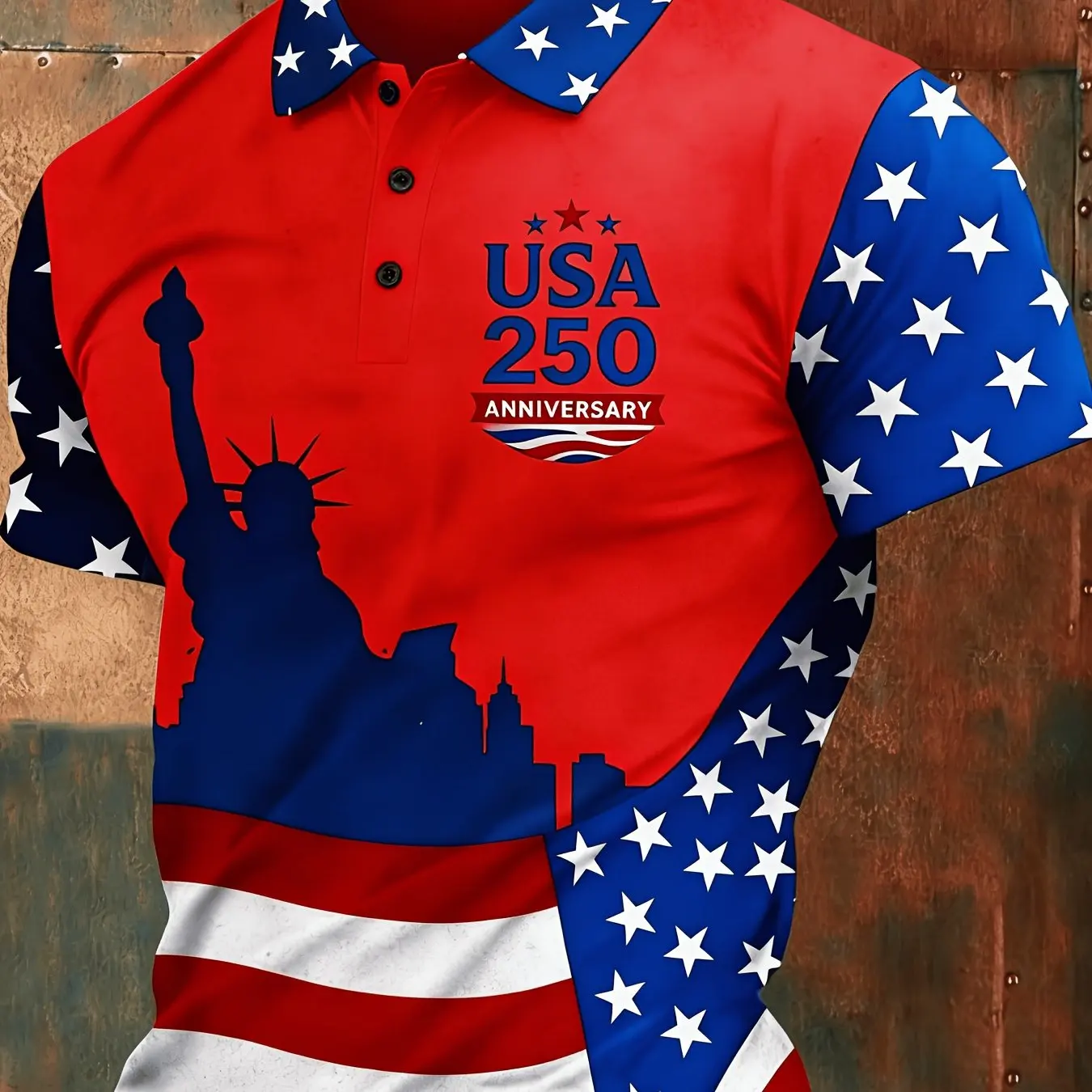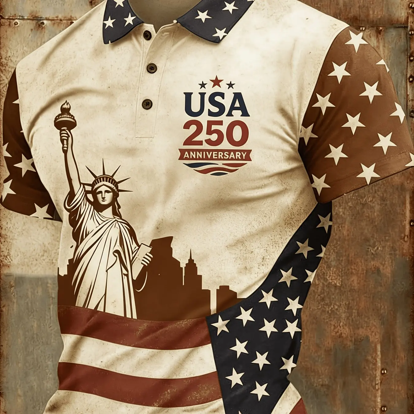 2026 Latest Men’s Casual Sports Short-sleeved Shirt, with 250th Anniversary and Statue of Liberty Pattern Prints