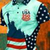 2026 Latest Men’s Casual Sports Short-sleeved Shirt, with 250th Anniversary and Statue of Liberty Pattern Prints