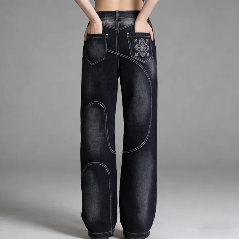 2026 New American Trend Joker Straight Jeans Women Street Hip Hop Vintage Casual Loose Wide-leg Pants Unisex Punk Mopping Jeans