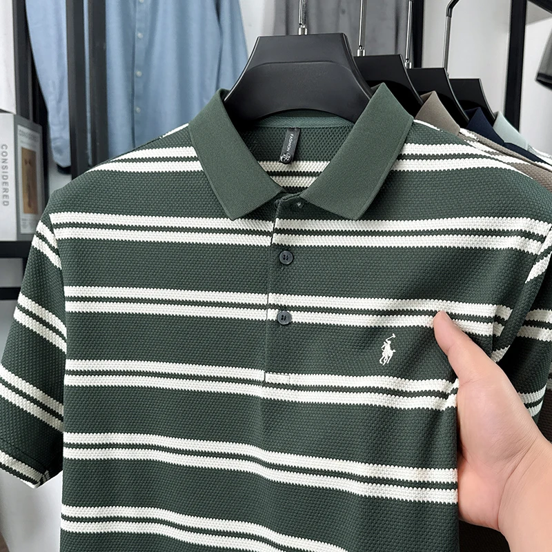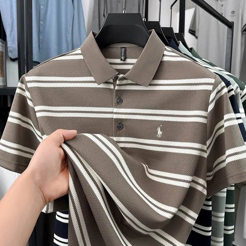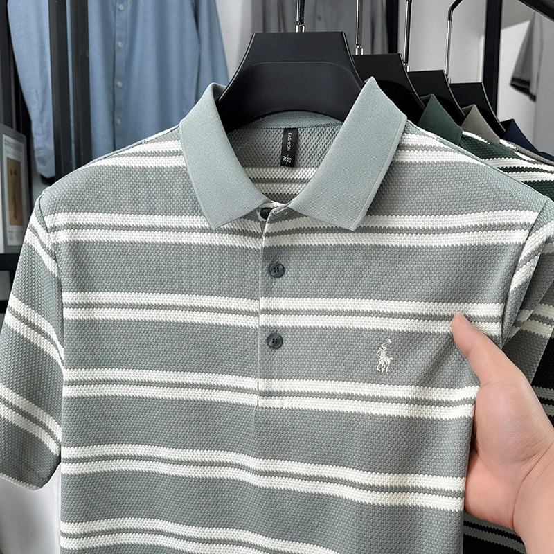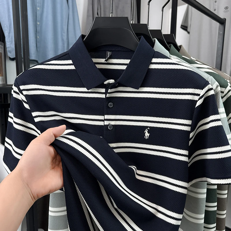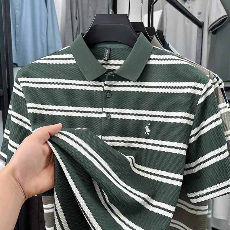 2026 New Men’s Summer Short Sleeved Lapel Striped Polo Shirt, Business Casual Cool T-shirt