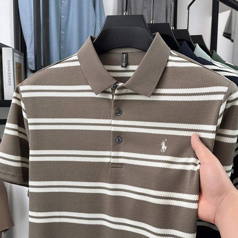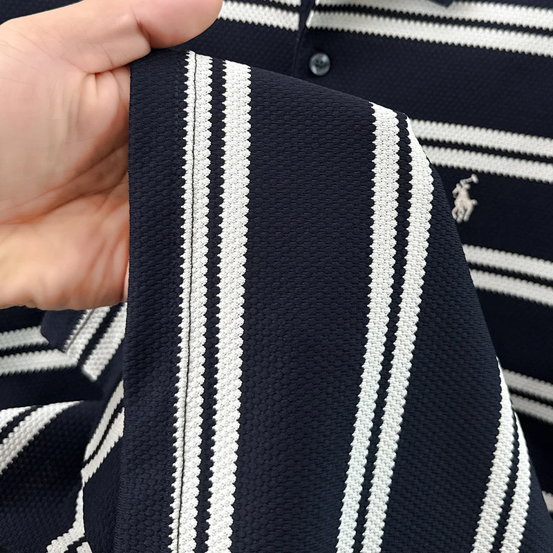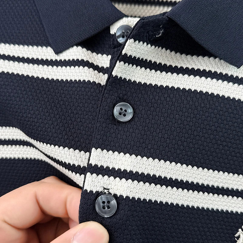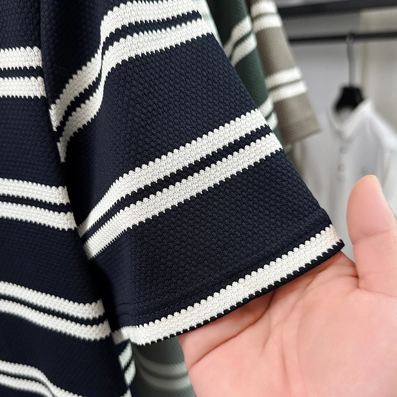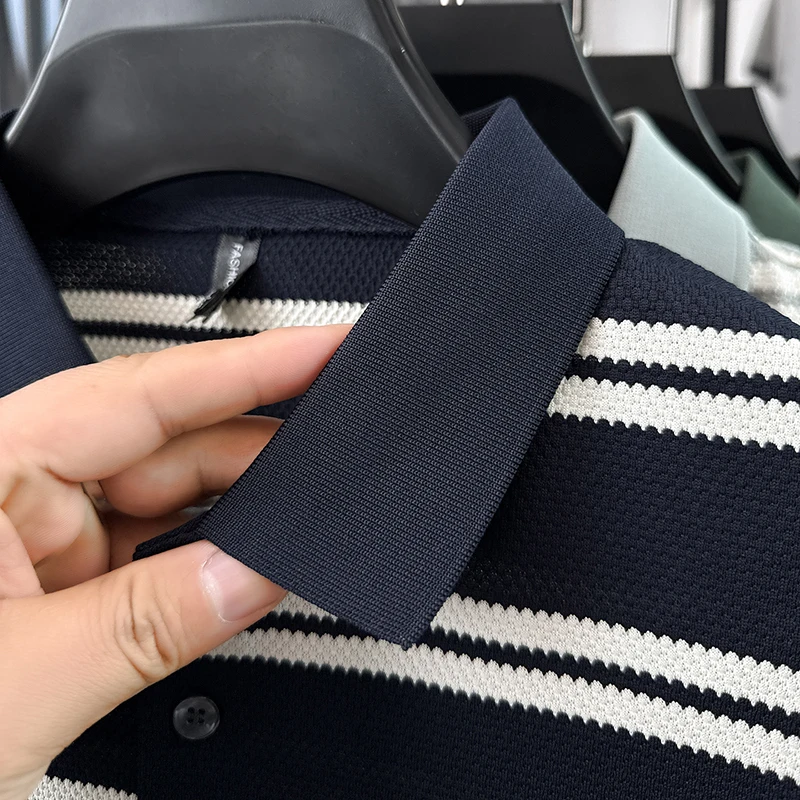 2026 New Men’s Summer Short Sleeved Lapel Striped Polo Shirt, Business Casual Cool T-shirt
