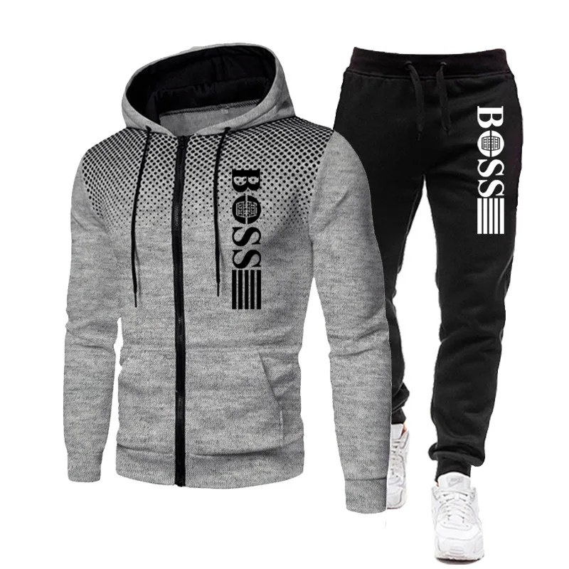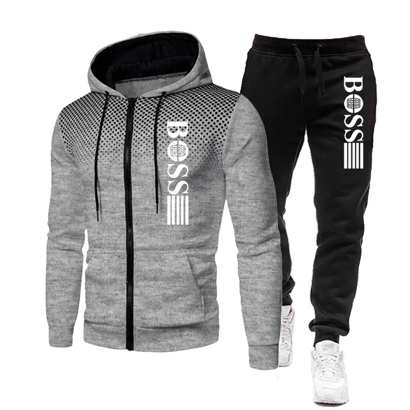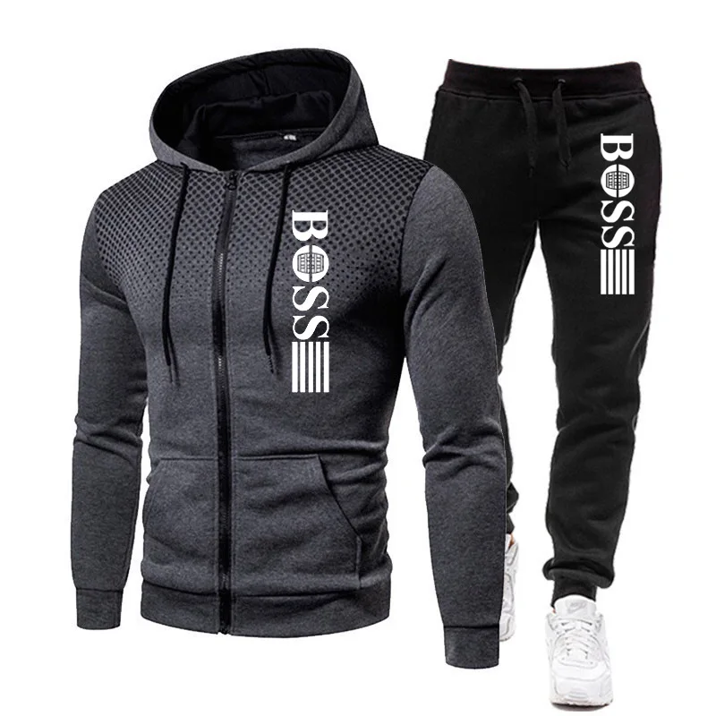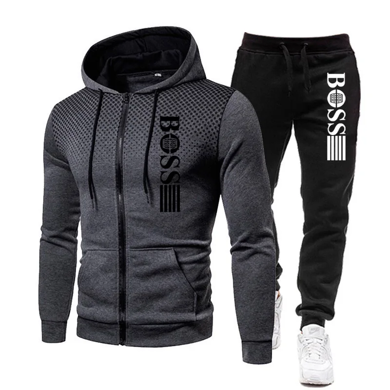 2026 New Men’s zippered hoodie + Casual Pants Set for Autumn and Winter fashion Fitness and Warm sportswear Two-piece set