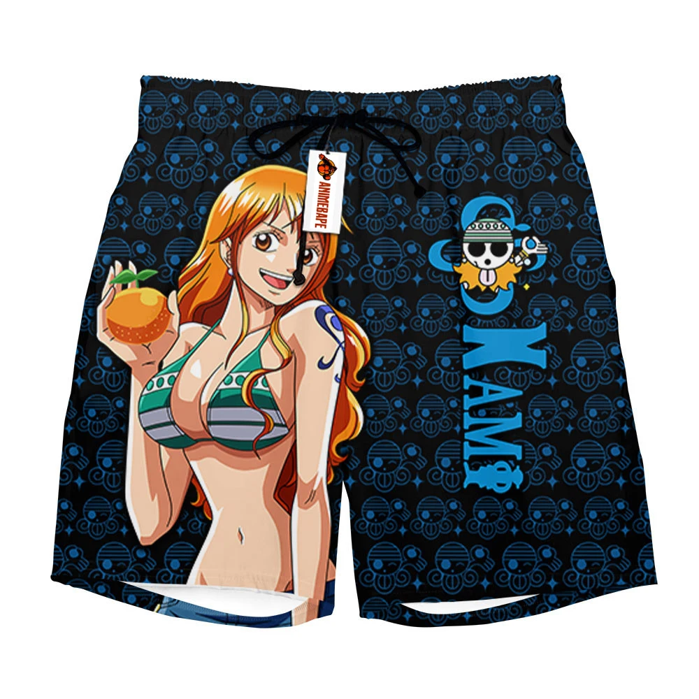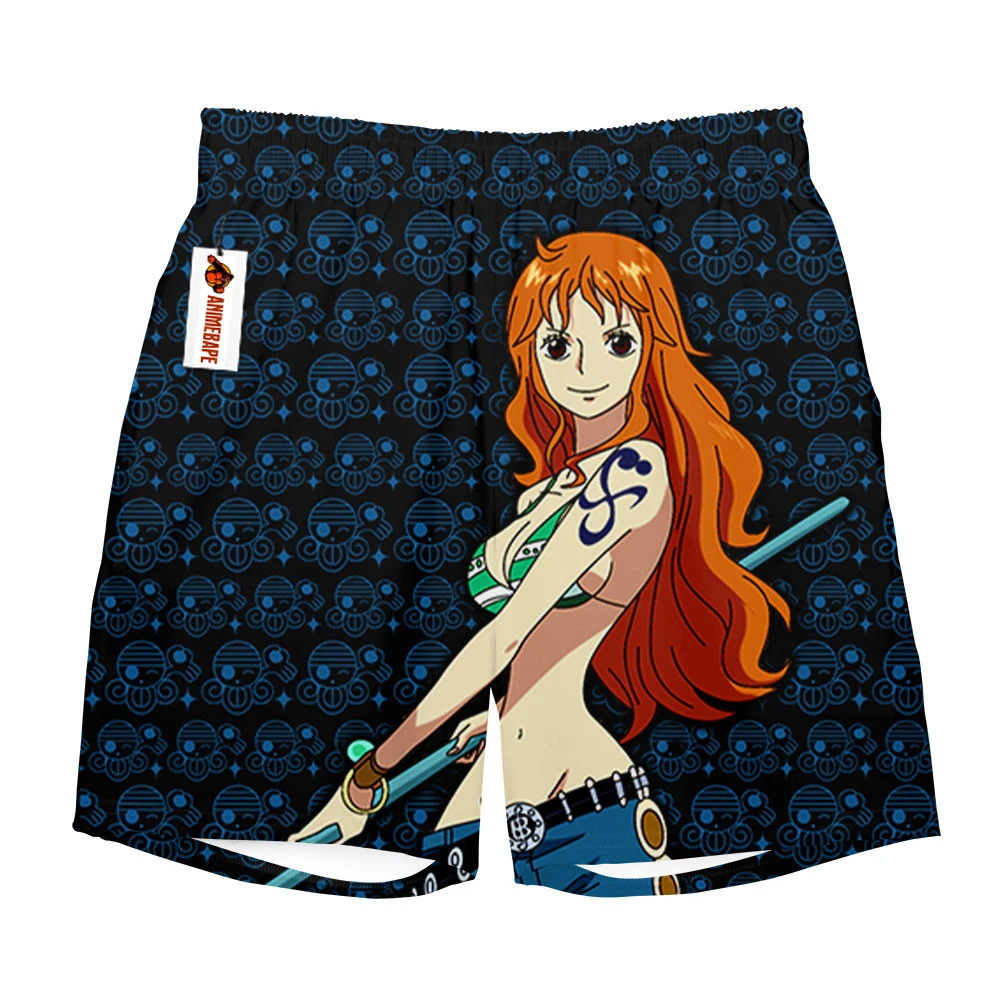 2026 Summer Japanese Anime One Piece Nami Orange Hair Print Quick Dry Shorts Men Streetwear Gym Training Athletic Shorts