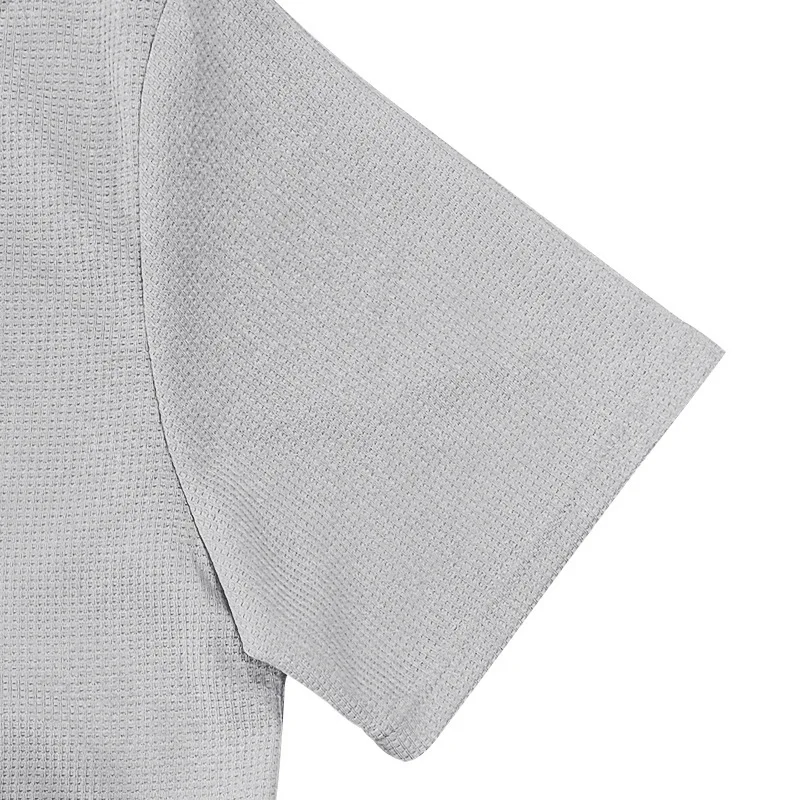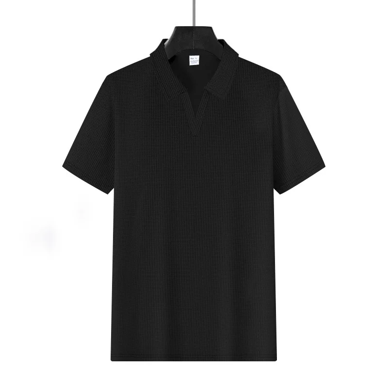 2026 Summer New Polo Collar Casual Fashion Men’s Clothing Waffle Short Sleeve Solid Color Casual V Collar Polo Shirt Male Top