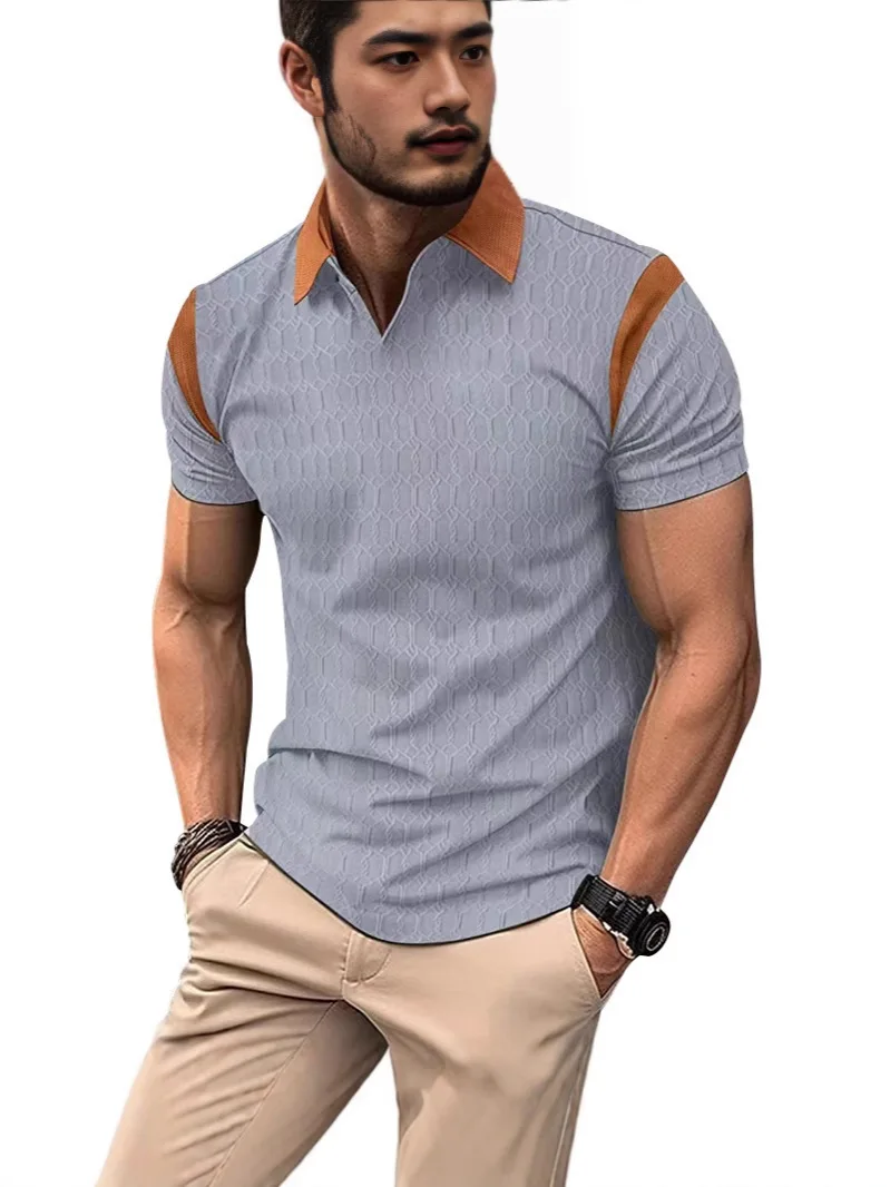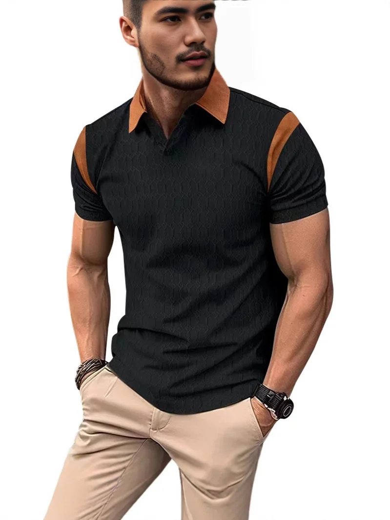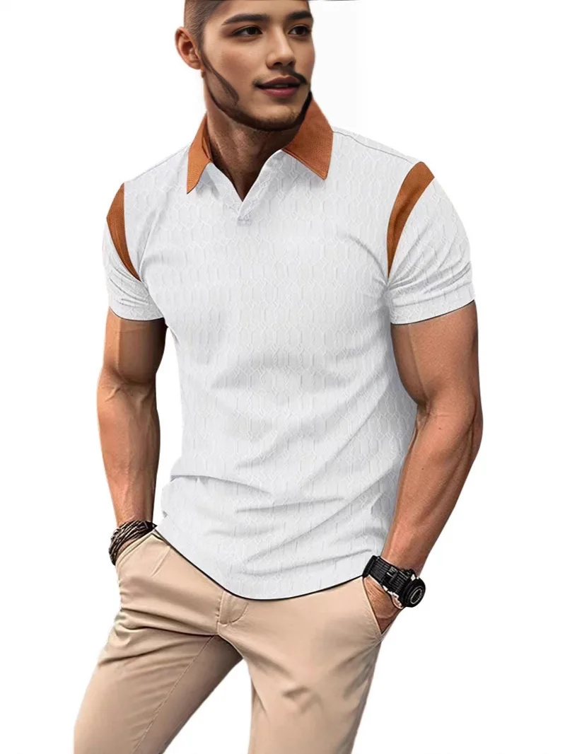 2026 summer new slim fit polo shirt men’s waffle jacquard color blocked lapel men’s short sleeved shirt