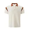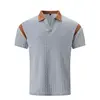 2026 summer new slim fit polo shirt men’s waffle jacquard color blocked lapel men’s short sleeved shirt