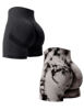 2PCS Tie Dye Butt Lifting Sexy Gym Shorts Woman Skinny Stretch High Waist Sport Shorts Casual Seamless
