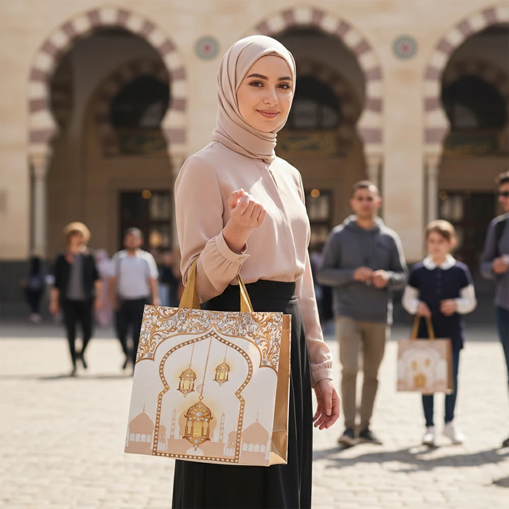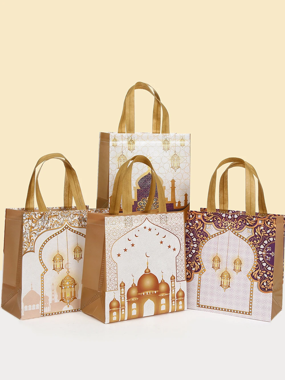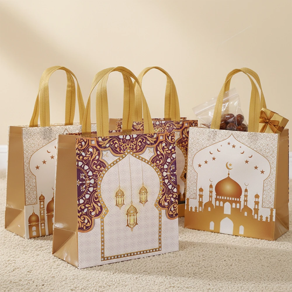 4/12/16pcs Eid Mubarak Non-Woven Gift Bags Cookie Candy Packaging Bag with Handle Ramadan Islamic Party Decoration Favors Supply