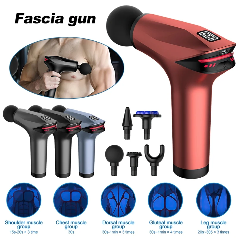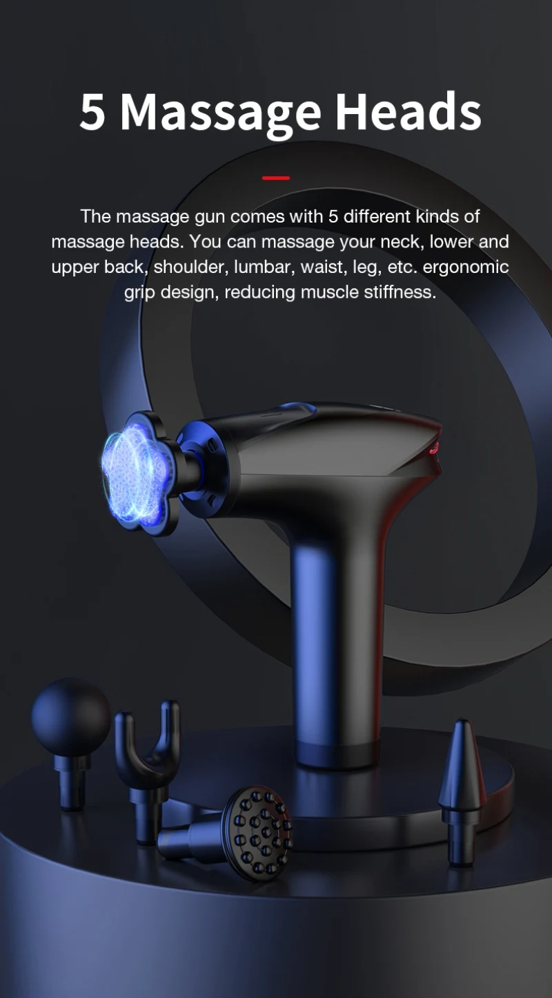 3. the streamlined design and cool breathing light make the massage gun full of sense of science and technology.