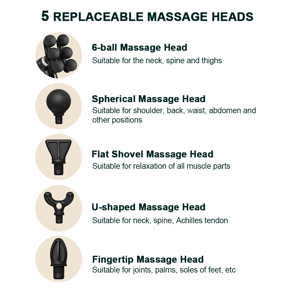 ⑤Flat shovel massage head, suitable for relaxation of all muscle parts.