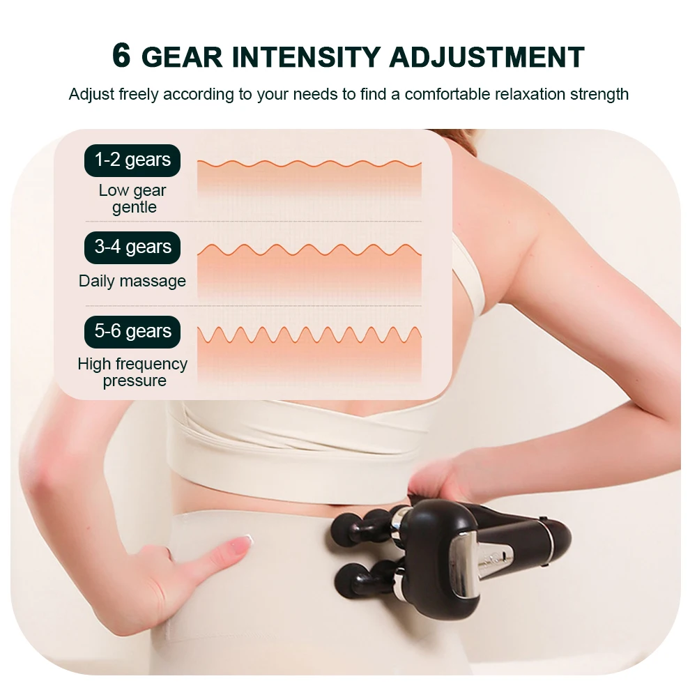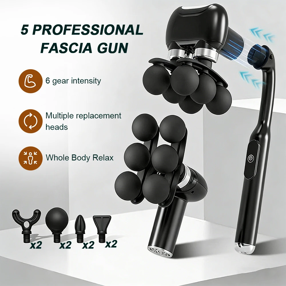 6-Heads Handhel Fascia Gun High Frequency Vibration Body Massage Gun Neck Shoulder Waist Back Handle Massager Fascia masajeador