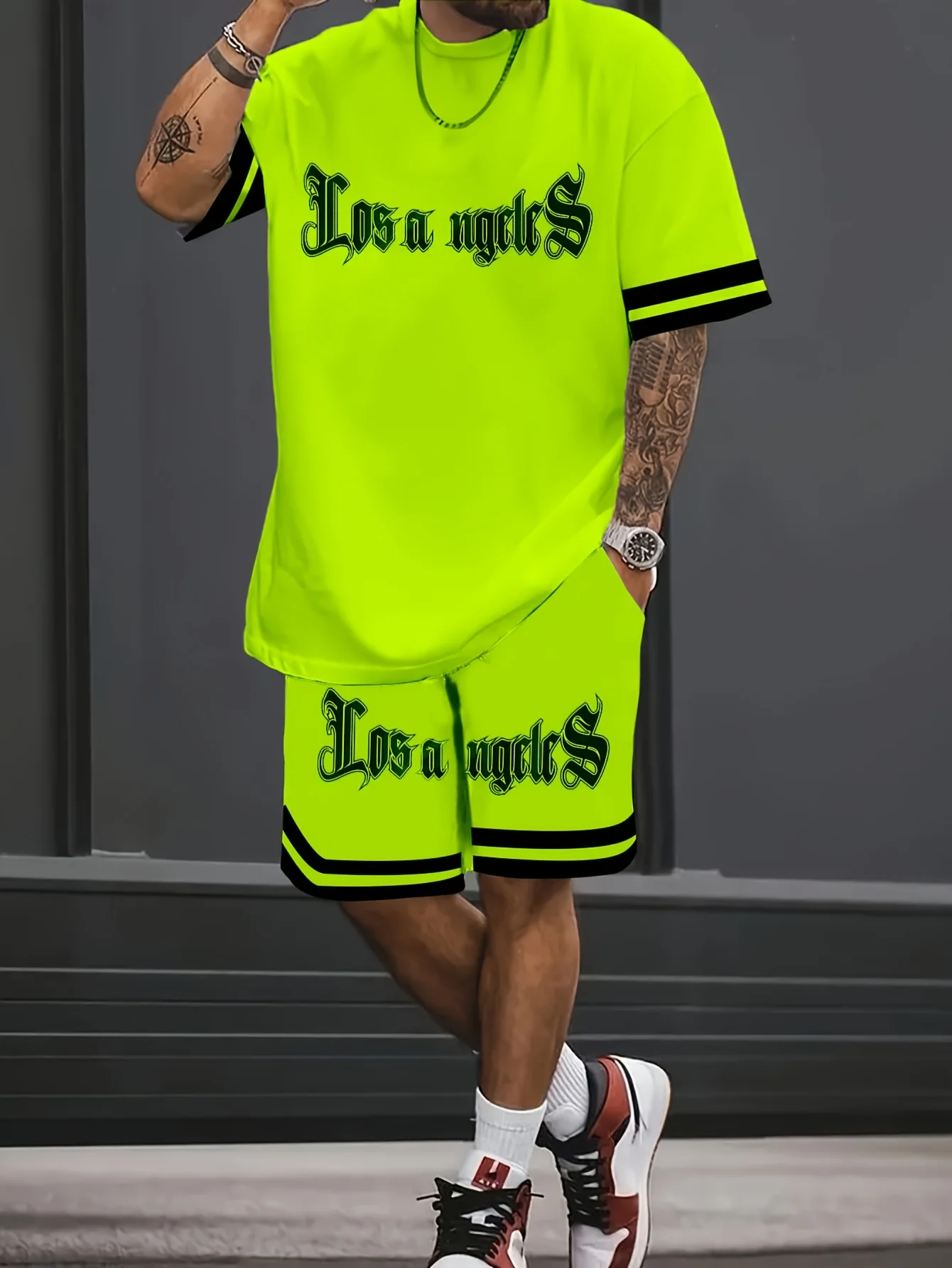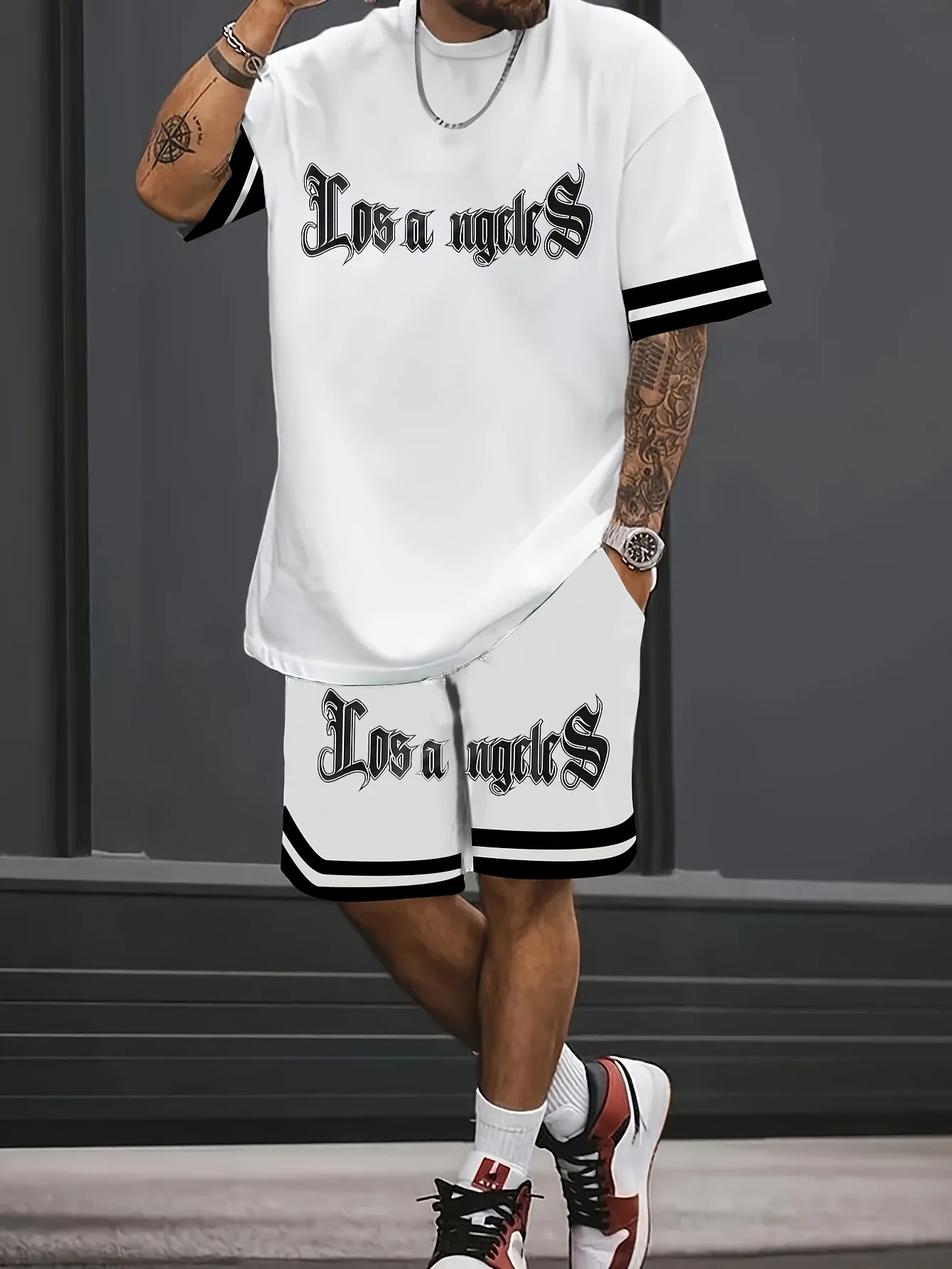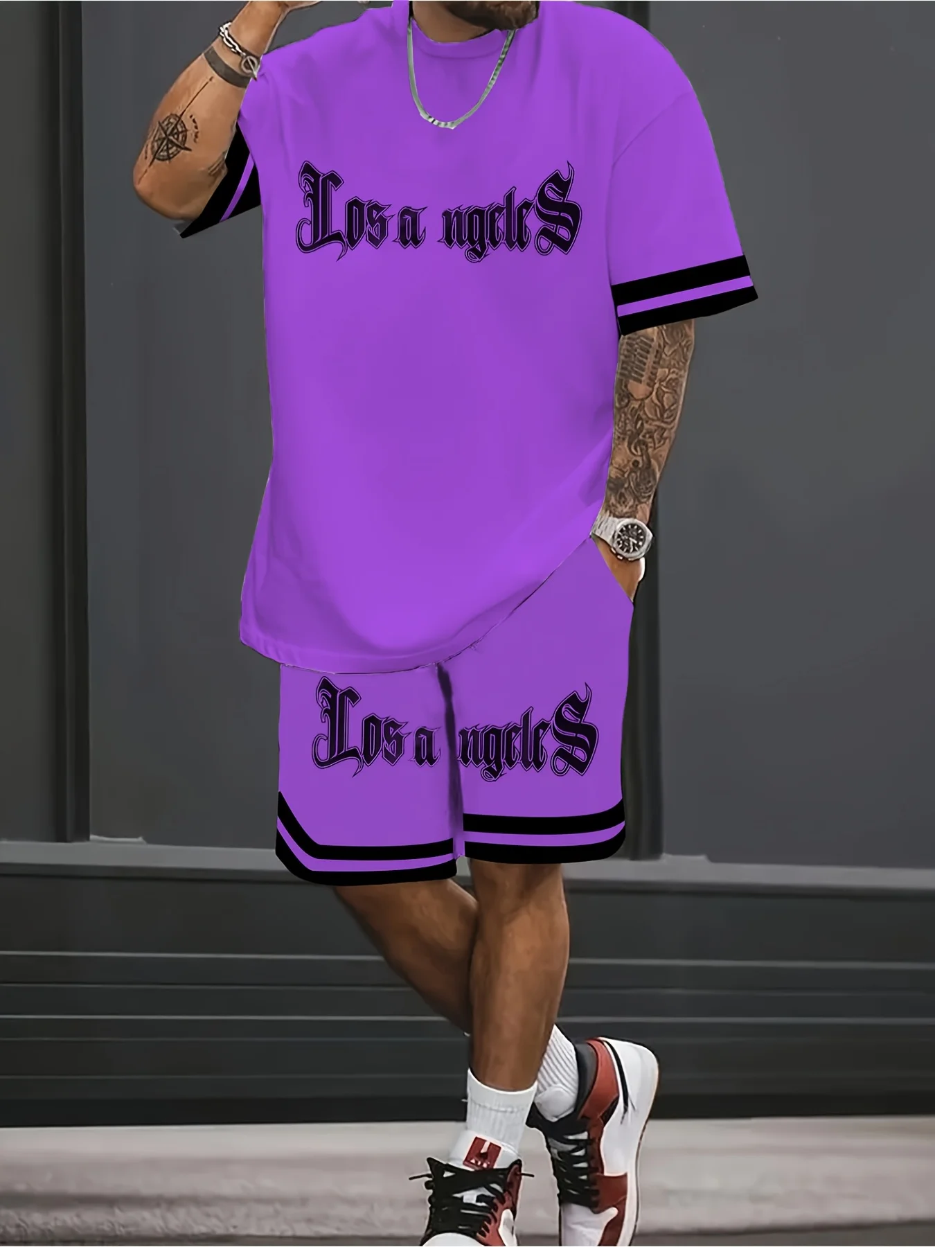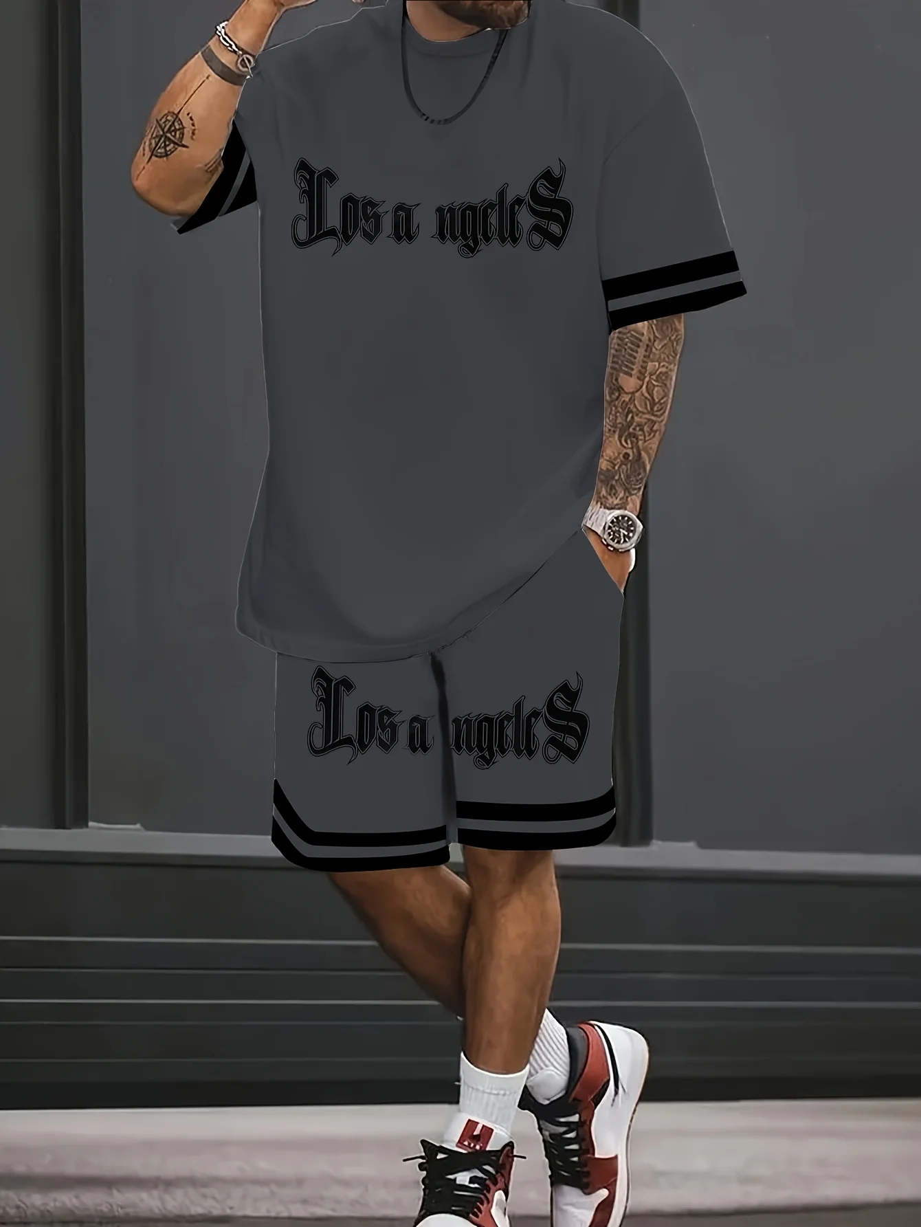 A new 3D letter-printed street fashion casual simple soft comfortable breathable and lightweight men’s suit for summer 2025