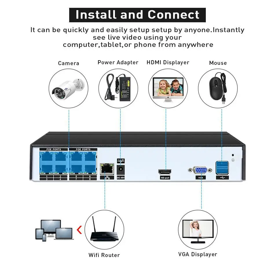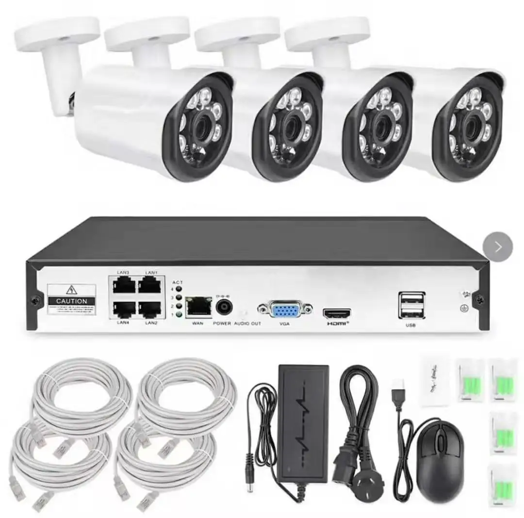 AI 4Ch NVR Kit 4pc IP Camera POE 5MP 8MP Audio Record Outdoor Security Night Vision Color Video Surveilance CCTV System Full Set