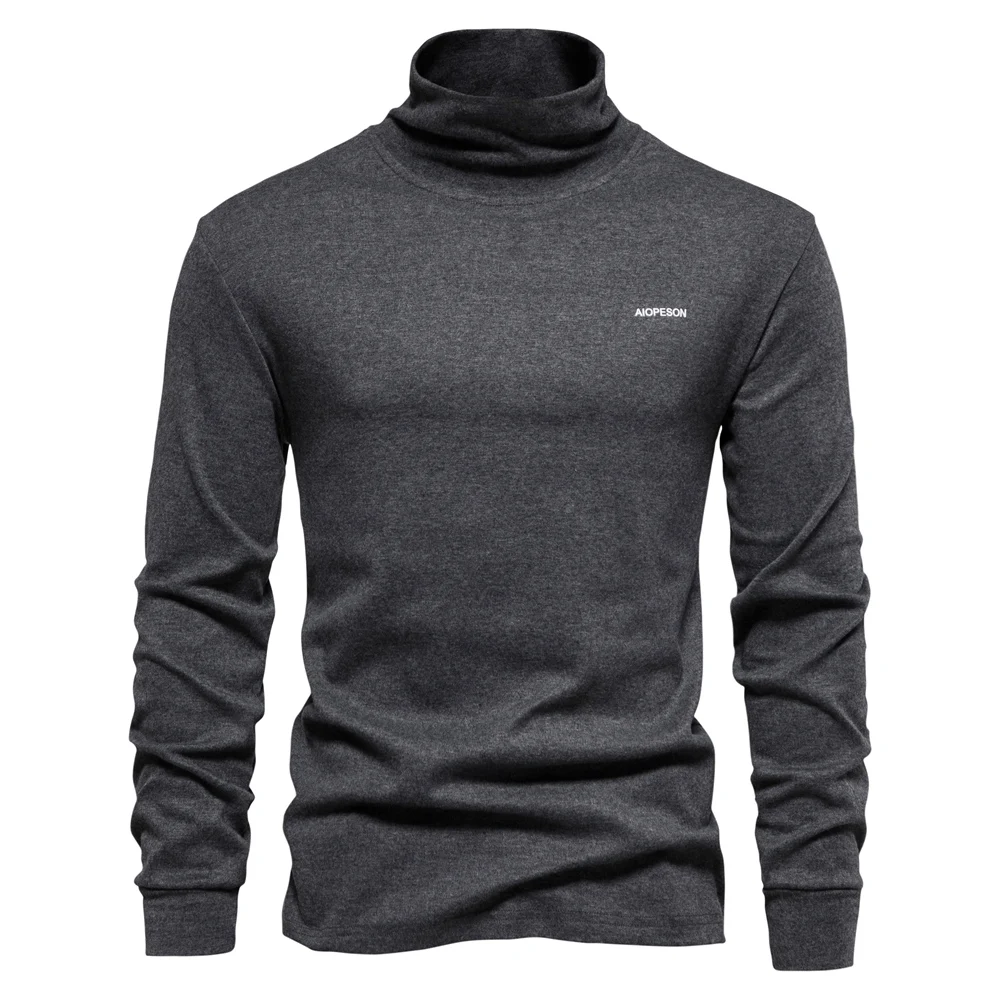 AIOPESON Solid Men T-shirt Casual Long Sleeve Turtleneck Bottoming Shirt for Men Autumn Winter Basic Slim Underwear Shirts Man