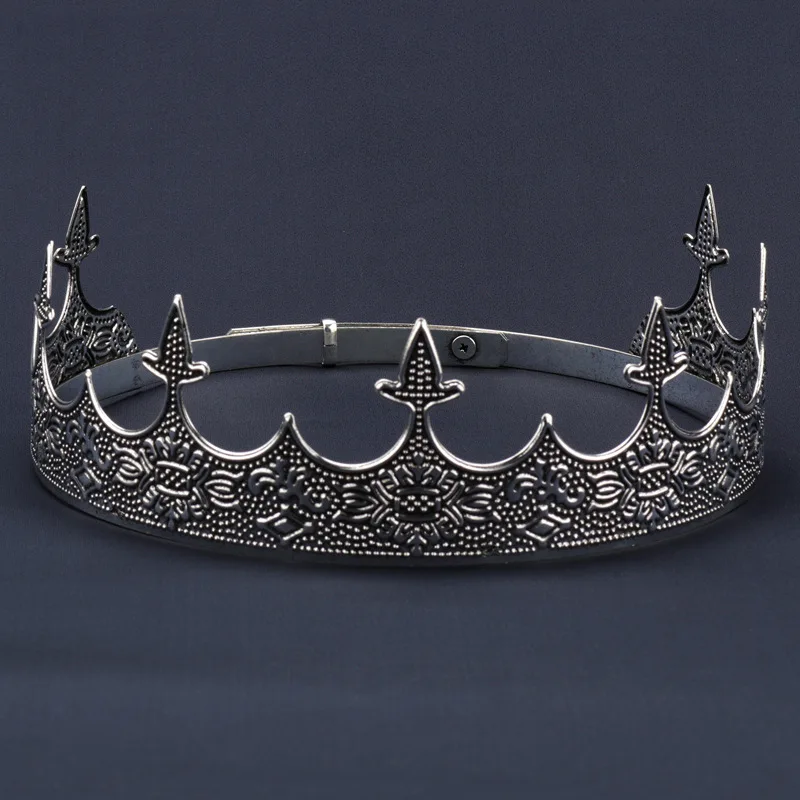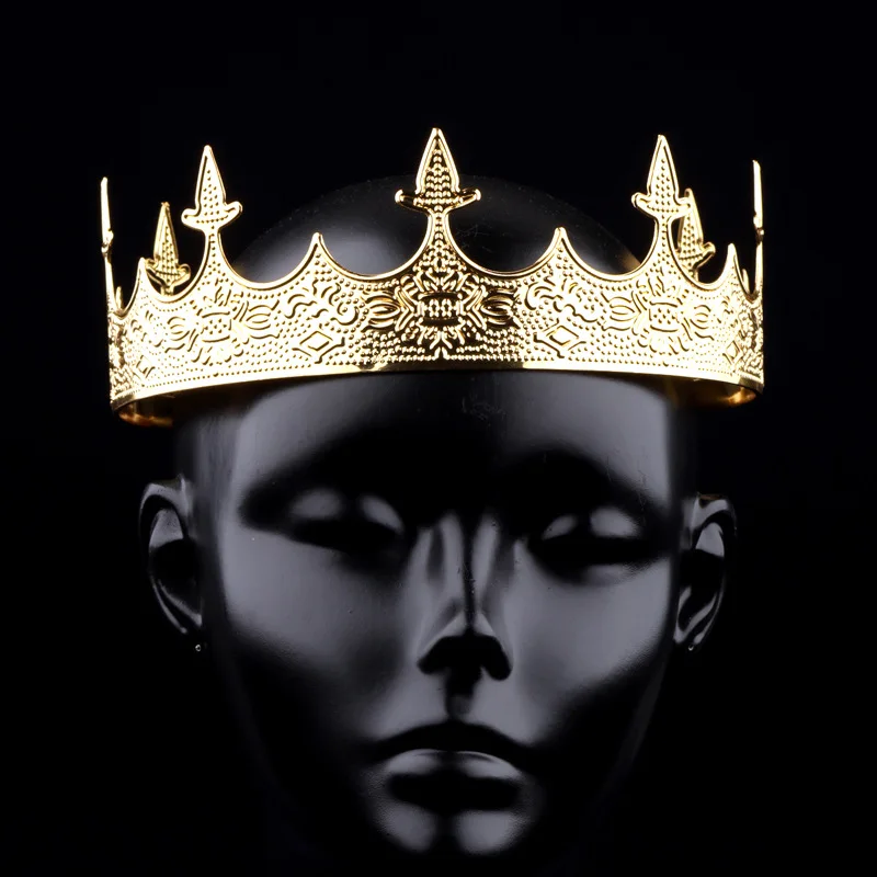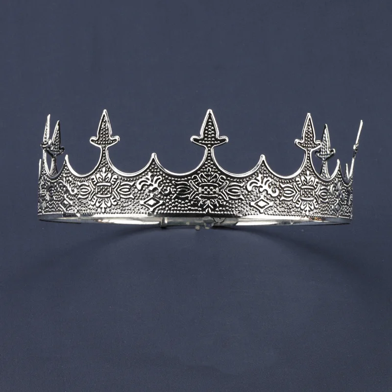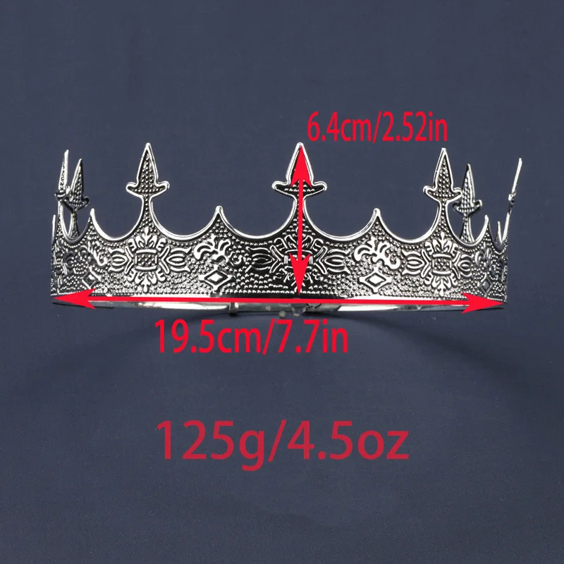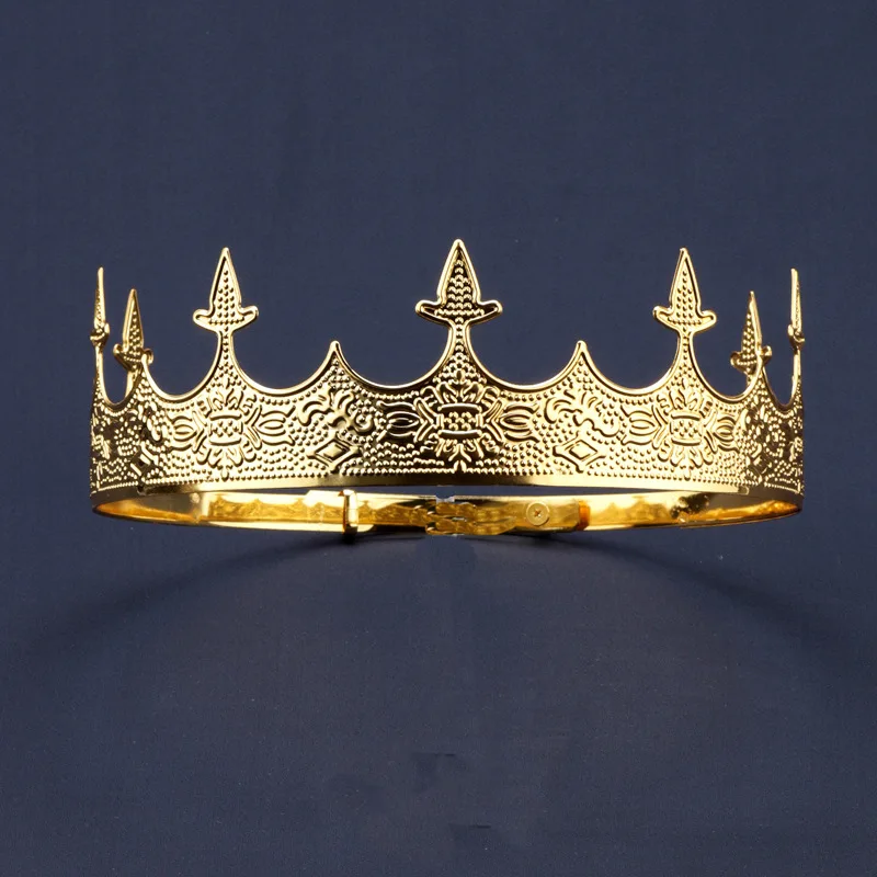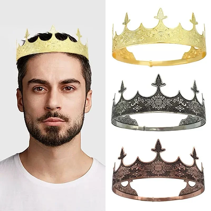 Alloy King Crown for Men Royal King Queen Crown Metal Prince Tiaras Full Round Birthday Party Hats Costume Jewelry Accessories