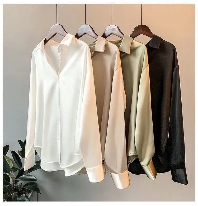 Autumn 2022 Womens Clothing Silk Shirt Vintage Blouse Women Sheer Top Women Long Sleeve Dress Shirt Plus Size Women Overshirt
