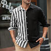 Autumn men’s casual versatile fashion street men’s shirt lapel single-breasted long-sleeved top men’s striped long-sleeved shirt