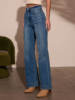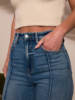 With clean lines and a tailored yet relaxed wide-leg hem, these jeans strike the perfect balance between sophistication and ease. The deep blue shade exudes understated luxury, complementing blouses, sweaters, or trench coats for a refined “quiet luxury” vibe. The flattering drape skims the figure gracefully, suiting diverse body types to embody effortless, intelligent femininity.