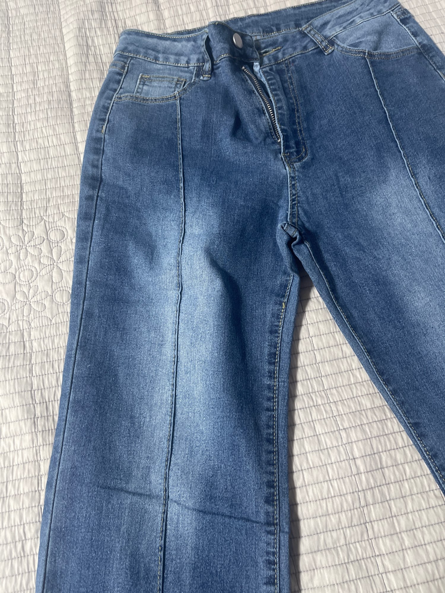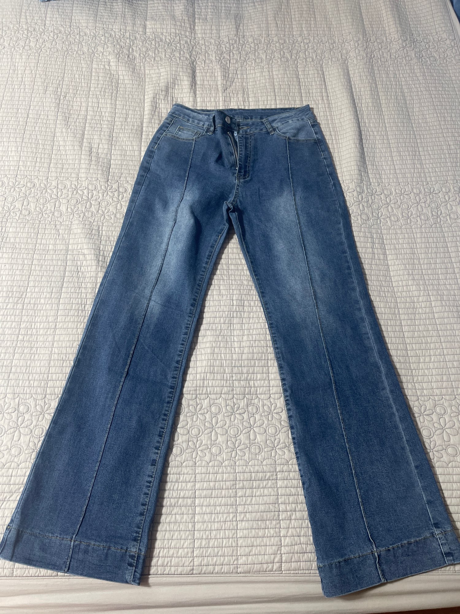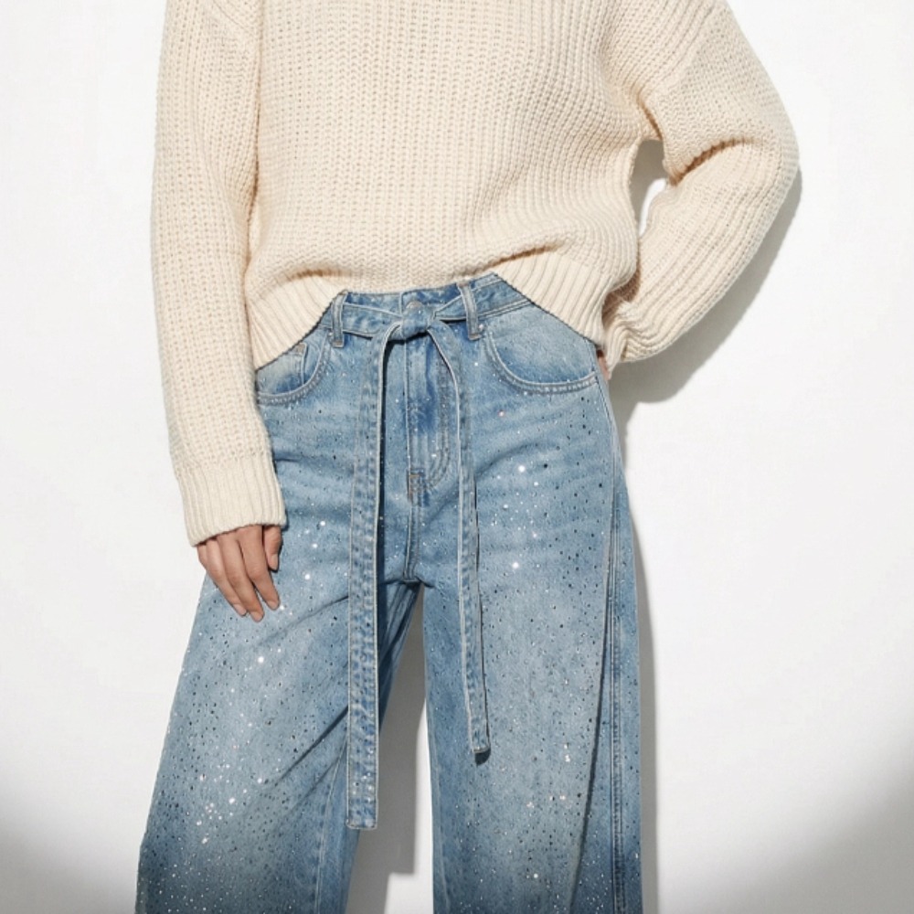 With clean lines and a tailored yet relaxed wide-leg hem, these jeans strike the perfect balance between sophistication and ease. The deep blue shade exudes understated luxury, complementing blouses, sweaters, or trench coats for a refined “quiet luxury” vibe. The flattering drape skims the figure gracefully, suiting diverse body types to embody effortless, intelligent femininity.