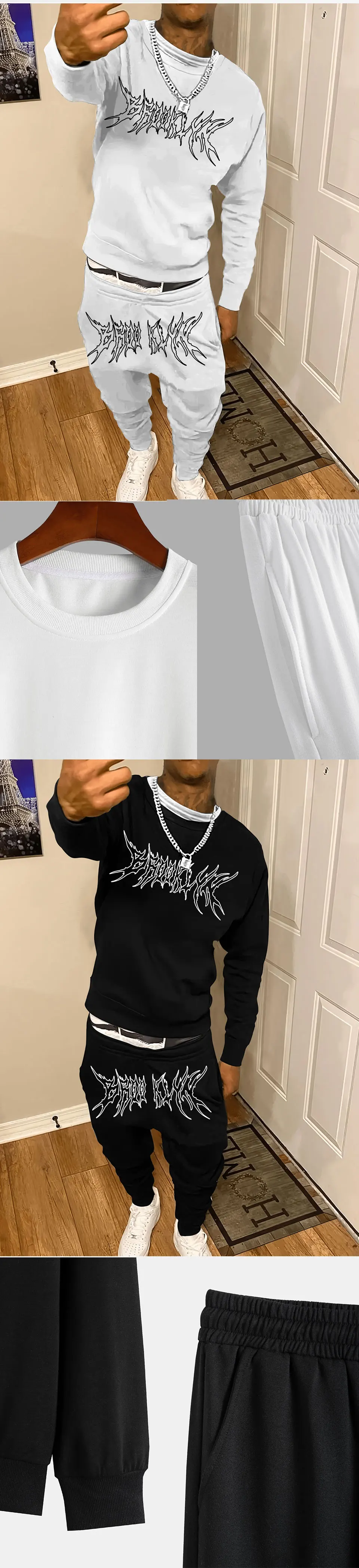 Autumn Trendy New Sweatshirt Sweatpants Set Men’s Daily Loose Casual Fit Printed Hundred Long Sleeve Sweatshirt 2 piecesSet
