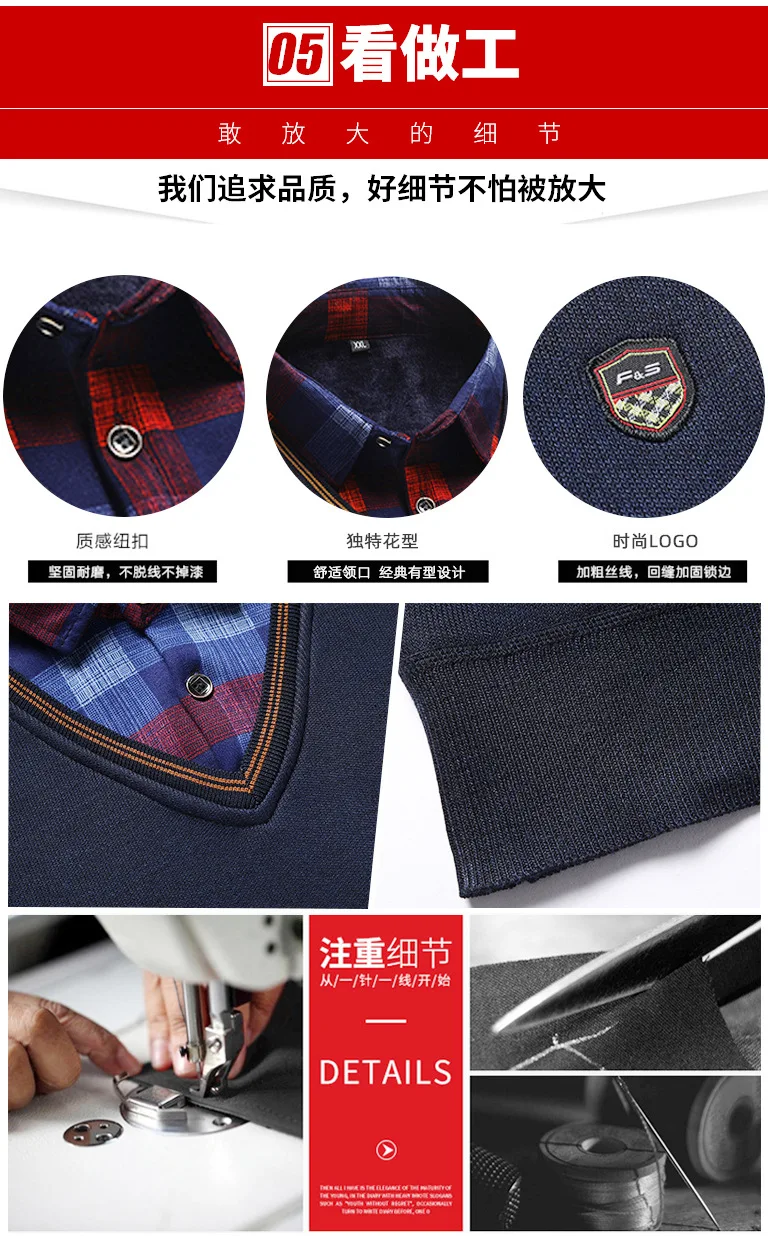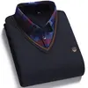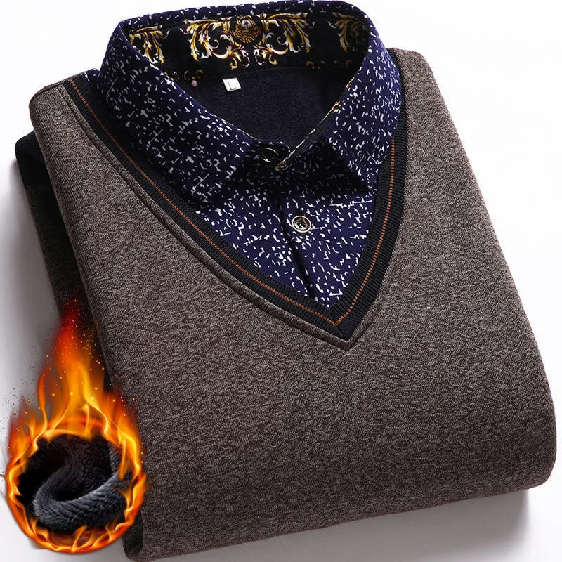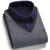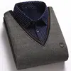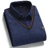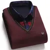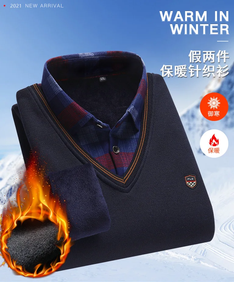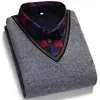 Autumn Winter Men Sweater Fake Two-piece Grid Thicken Knitted Male Basic Sweater Solid Pullover Shirt Jumper Sweater Male 2024