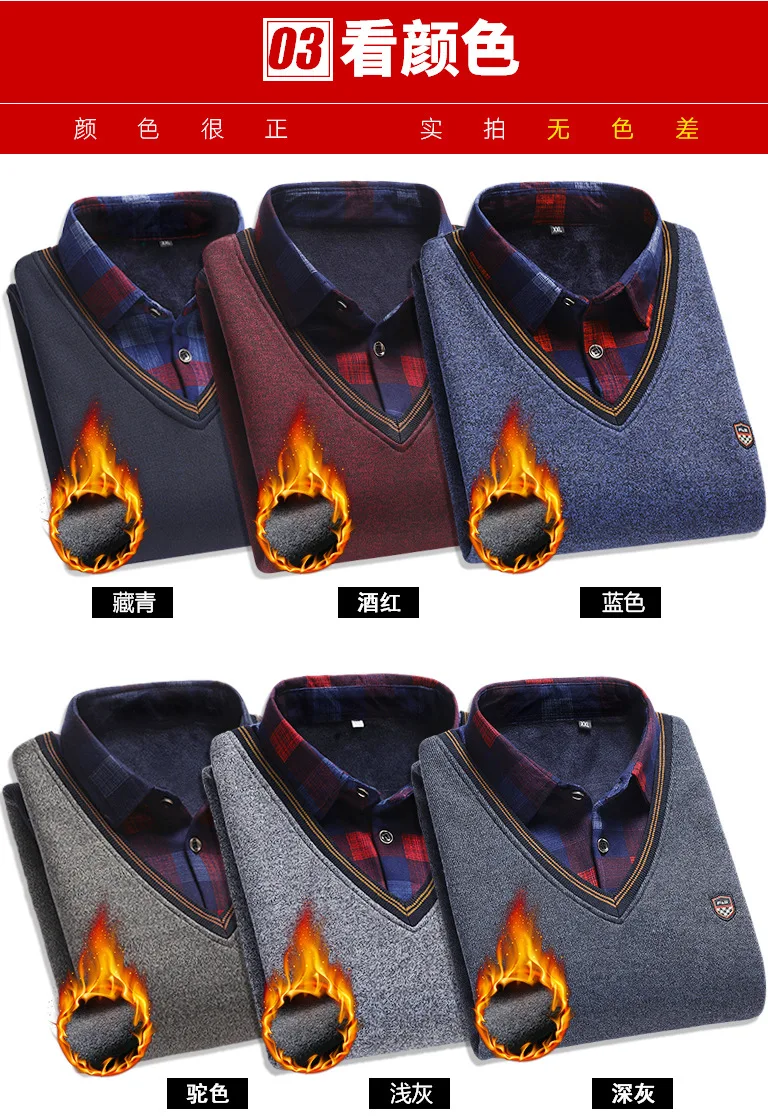 Autumn Winter Men Sweater Fake Two-piece Grid Thicken Knitted Male Basic Sweater Solid Pullover Shirt Jumper Sweater Male 2025