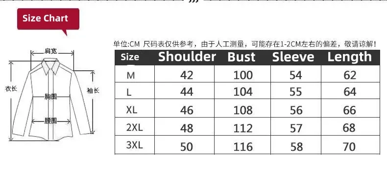 3XL:Shoulder :50cm  Bust :114cm  Sleeve :58cm Length 70cm